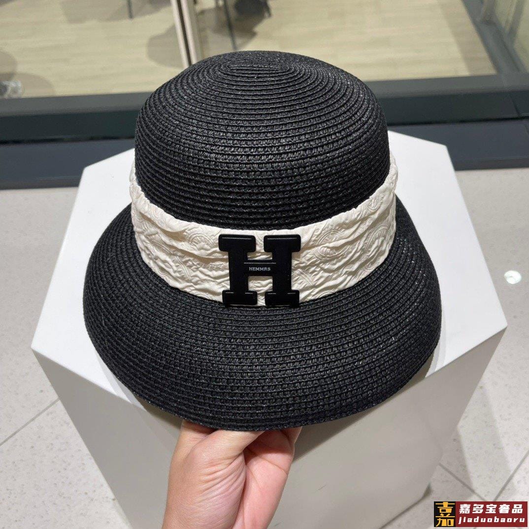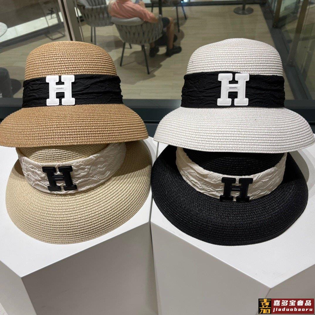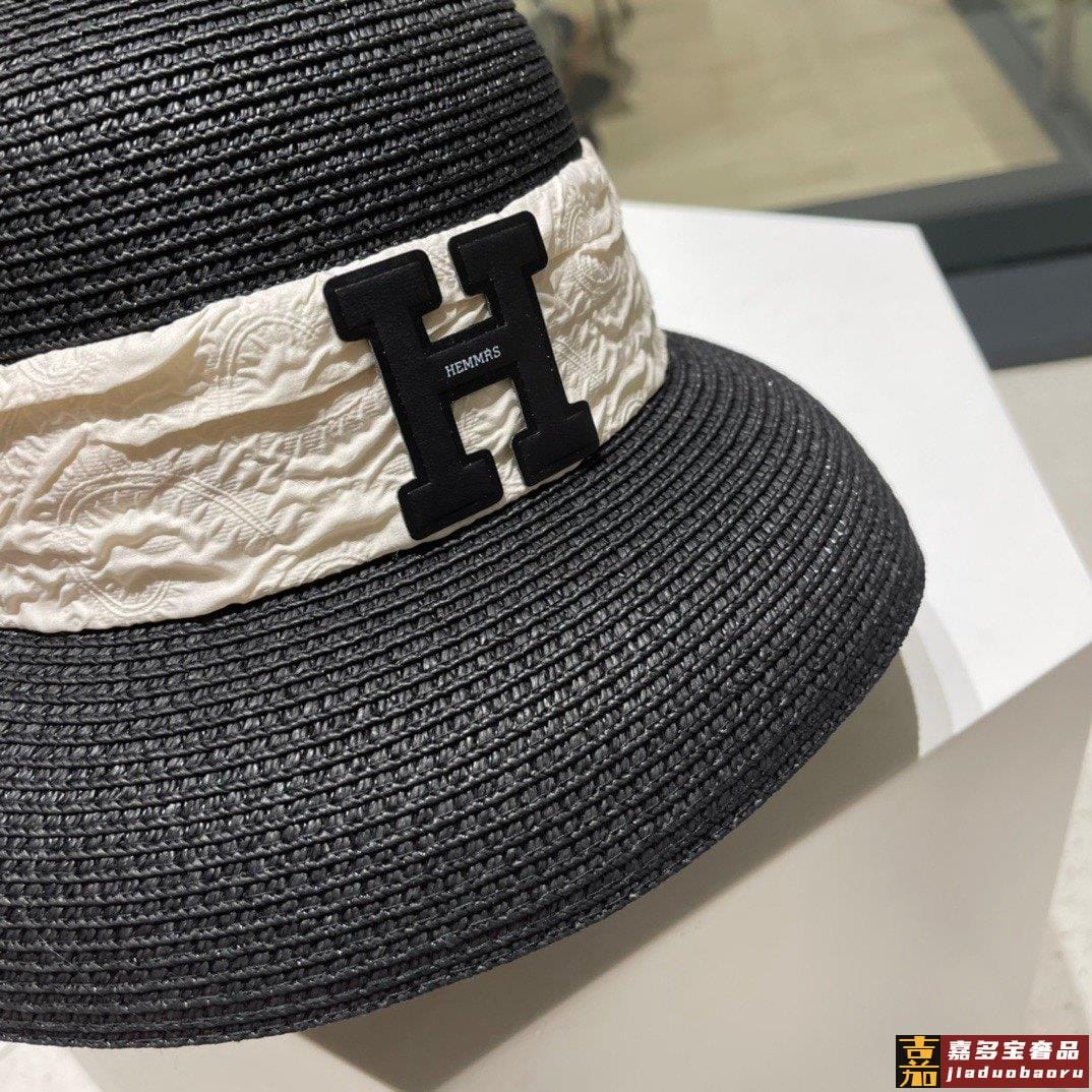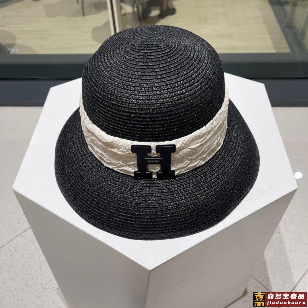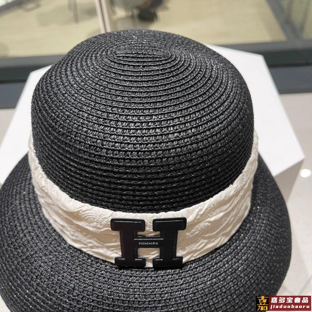 爱马仕新款草编遮阳草帽盆帽沙滩风简约大方百搭单品