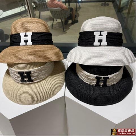爱马仕新款草编遮阳草帽盆帽沙滩风简约大方百搭单品