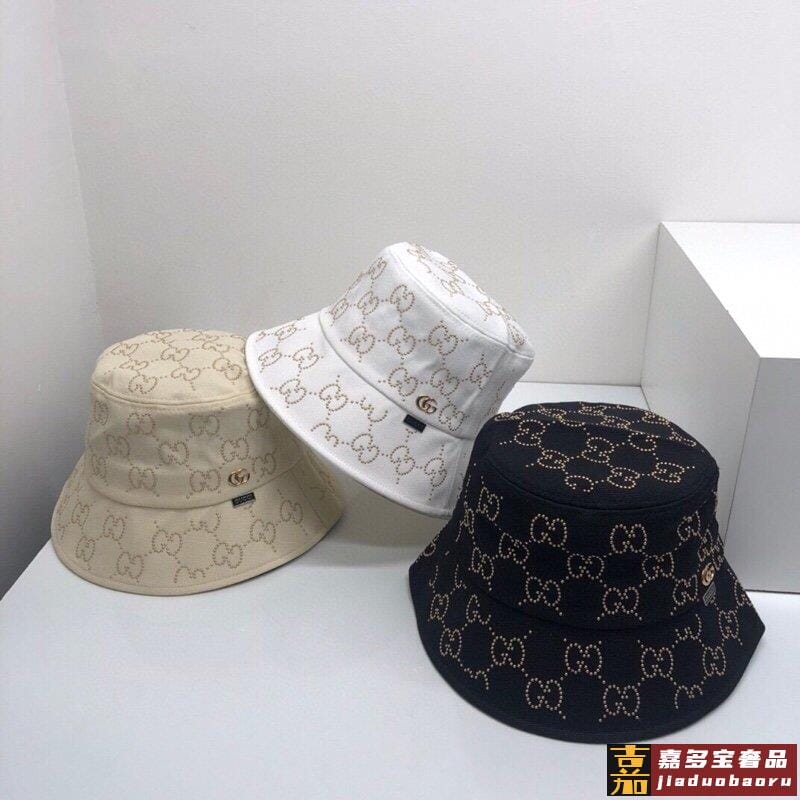 古琦新品渔夫帽小众设计贴钻盆帽气质名媛风格超文艺可随意折叠携