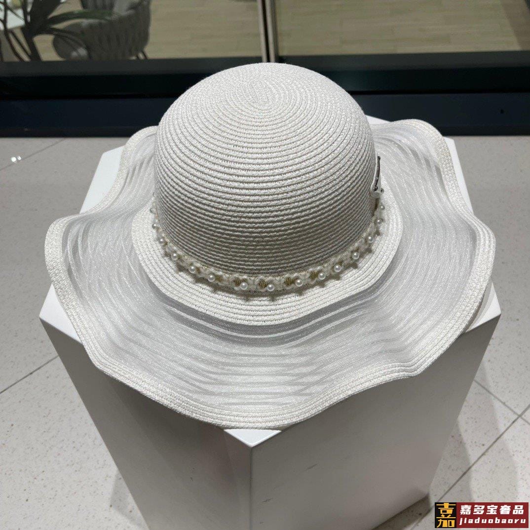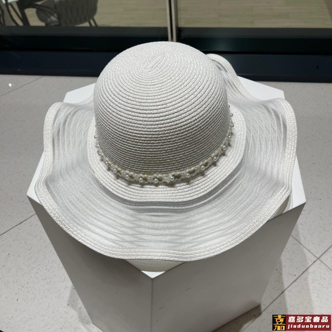 香奈儿新款手勾拉菲草须边款盆帽草帽礼帽细节控简约大方百搭单品