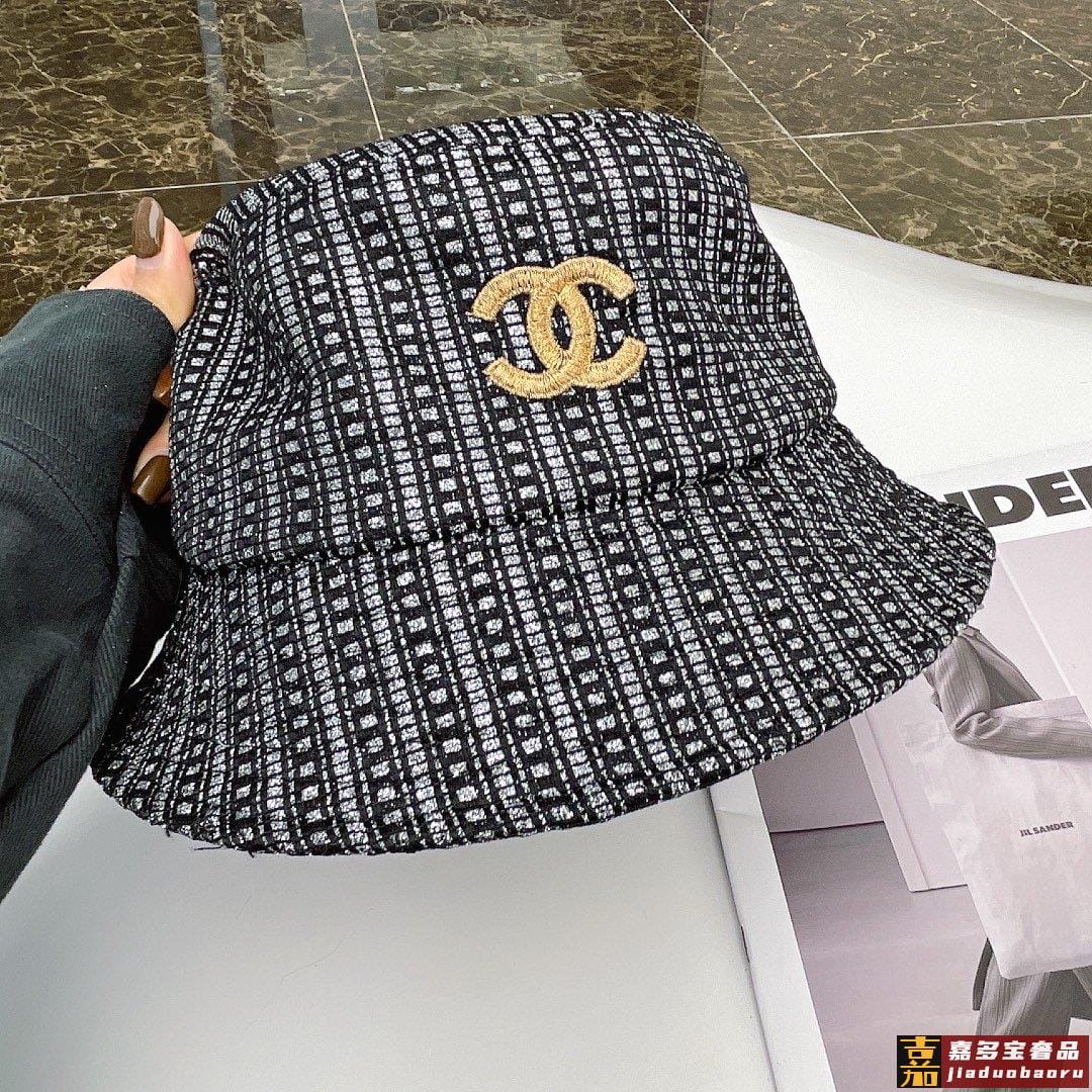 香奈儿新款专柜同步小香风粗花呢刺绣字母渔夫帽细节满分男女款超