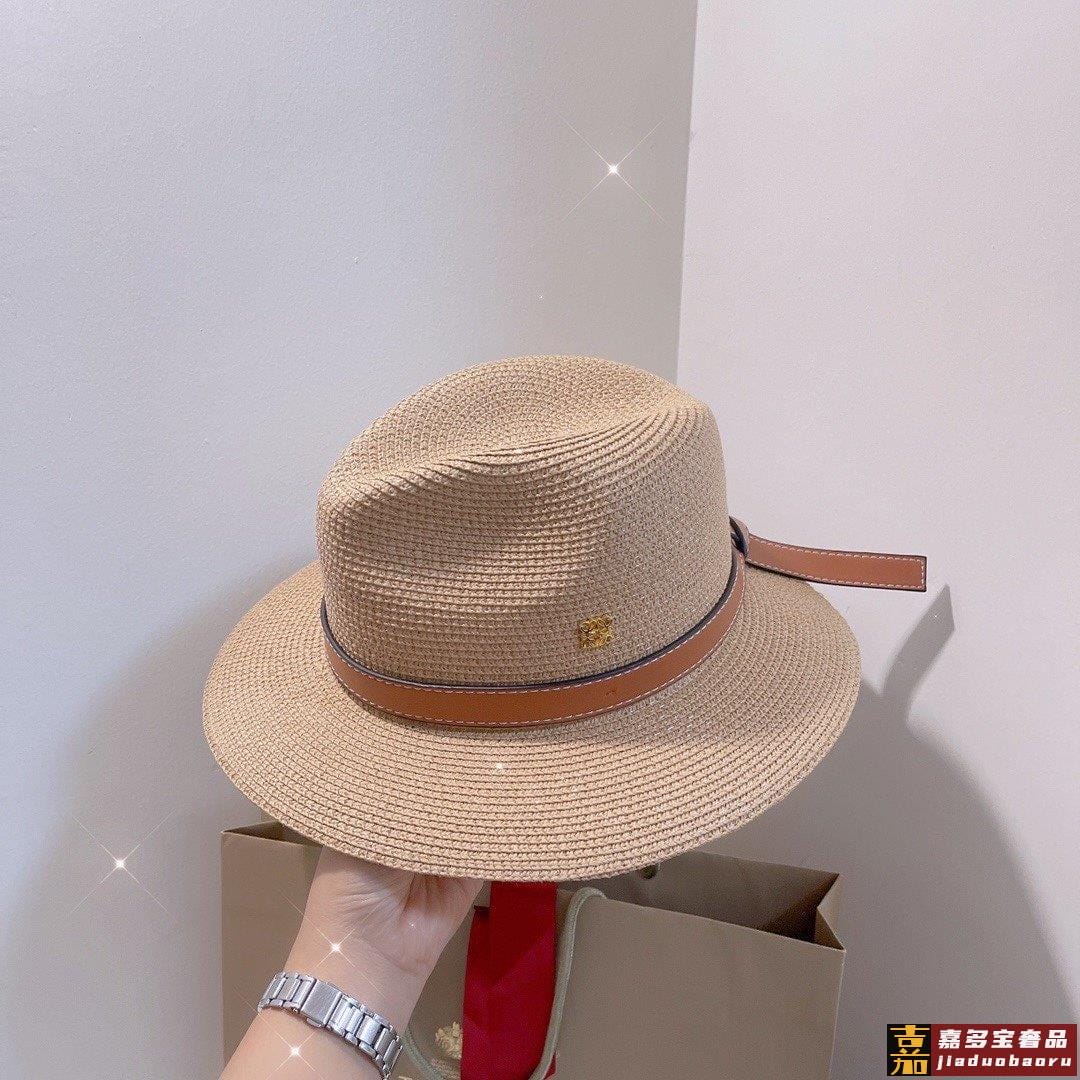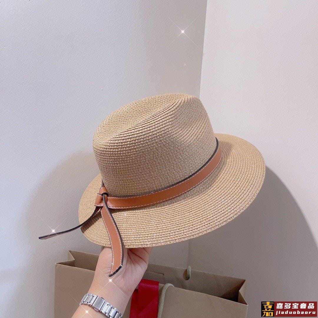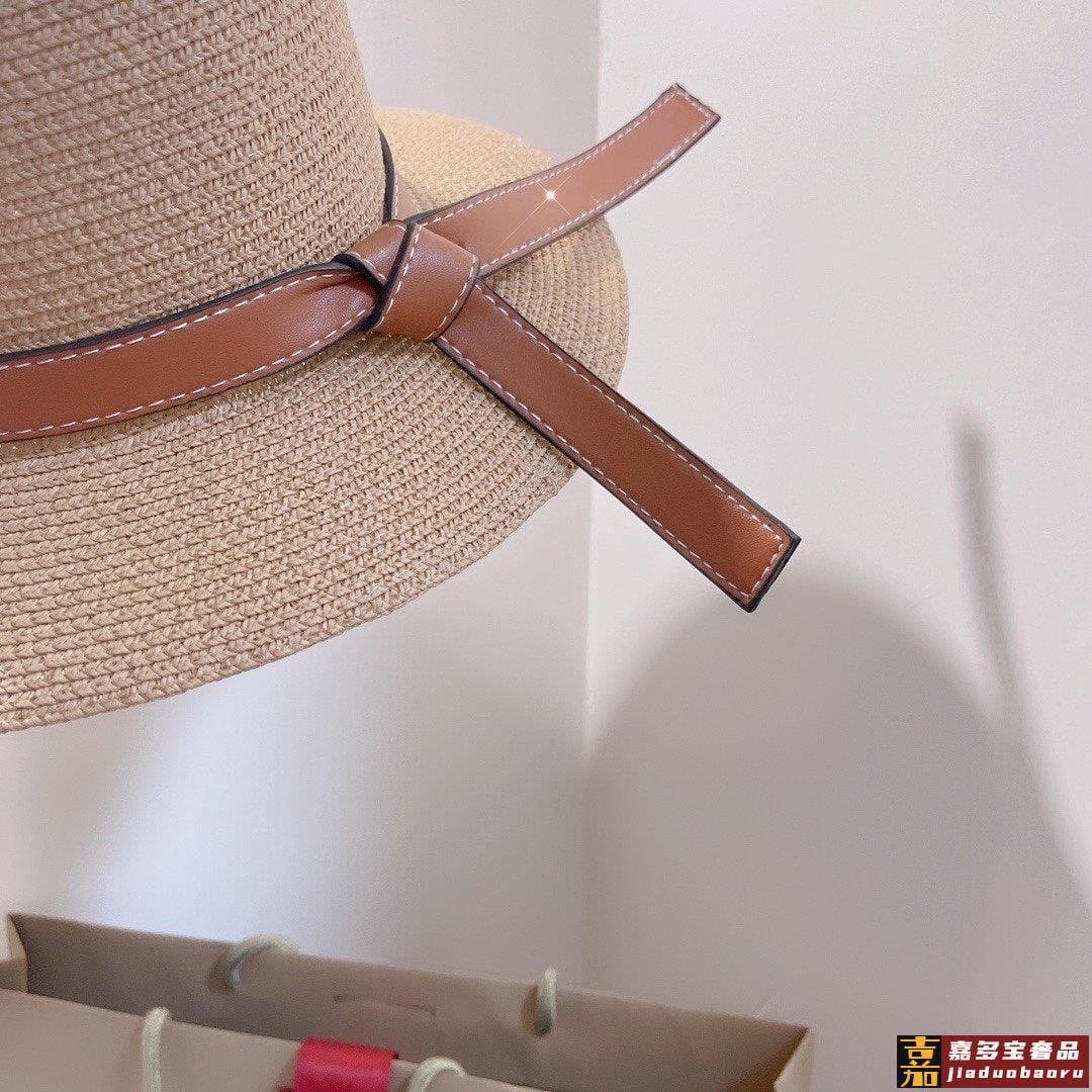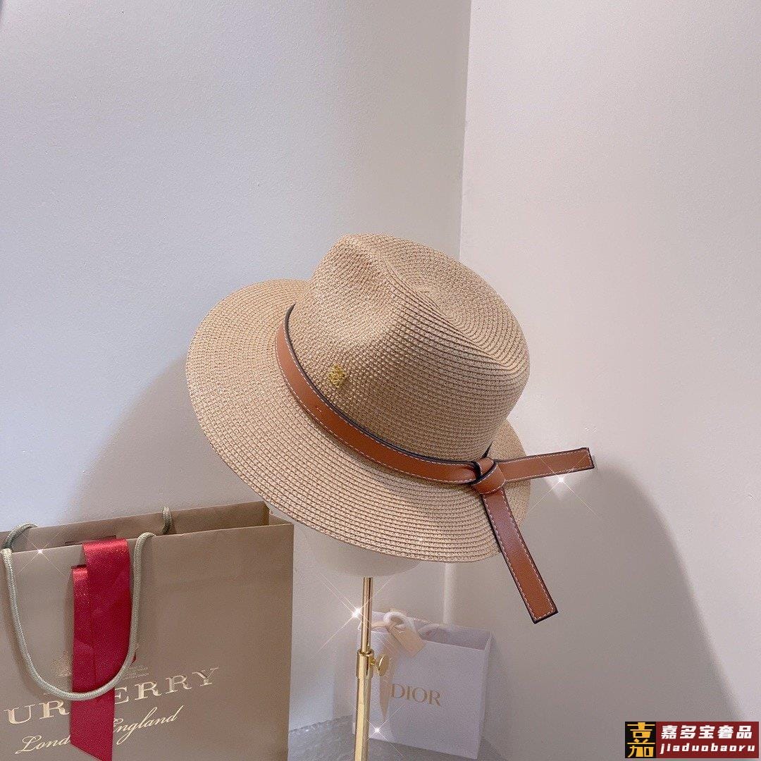 罗意威专柜新款罗意威太阳帽礼帽棕色皮边复古时尚火爆单品草遮阳