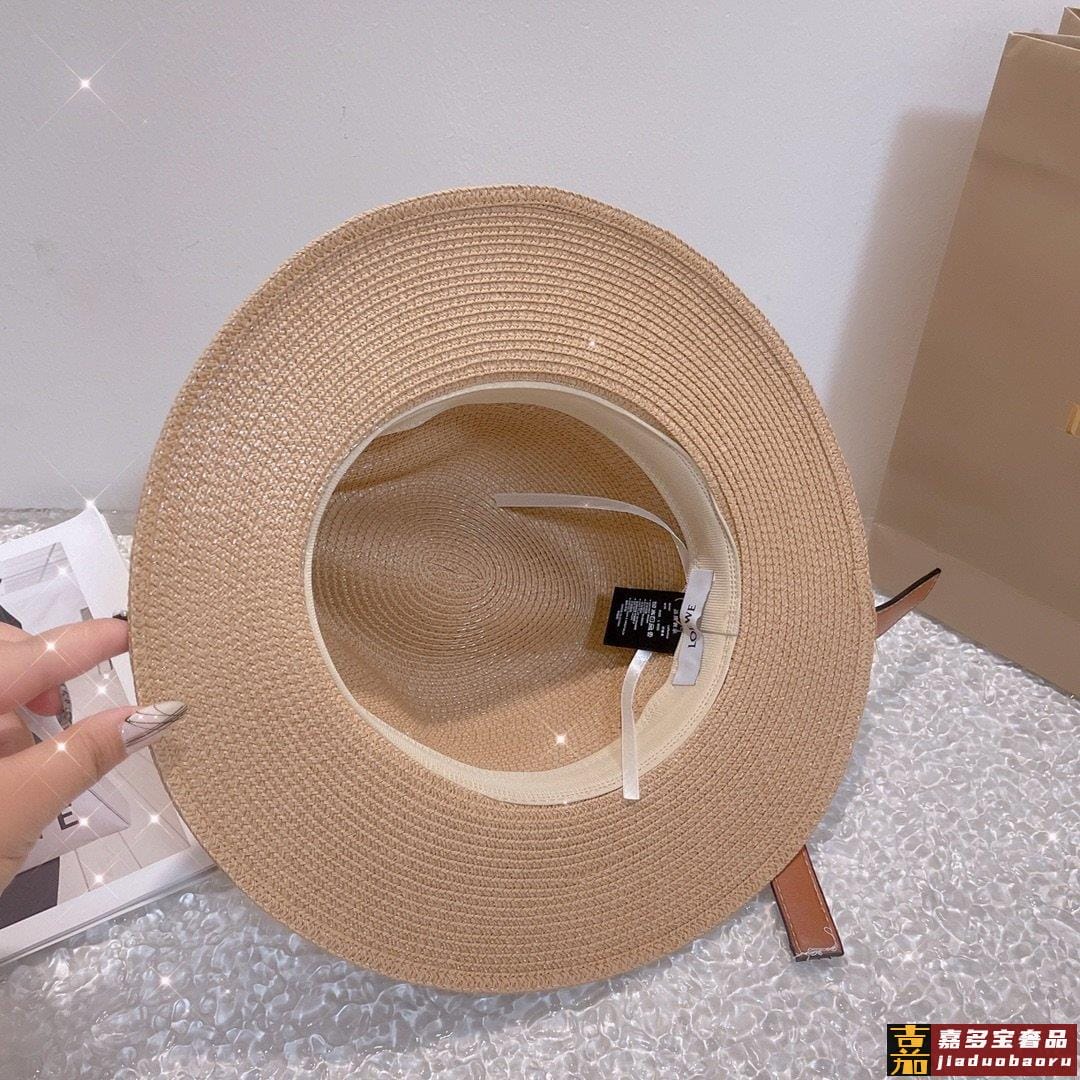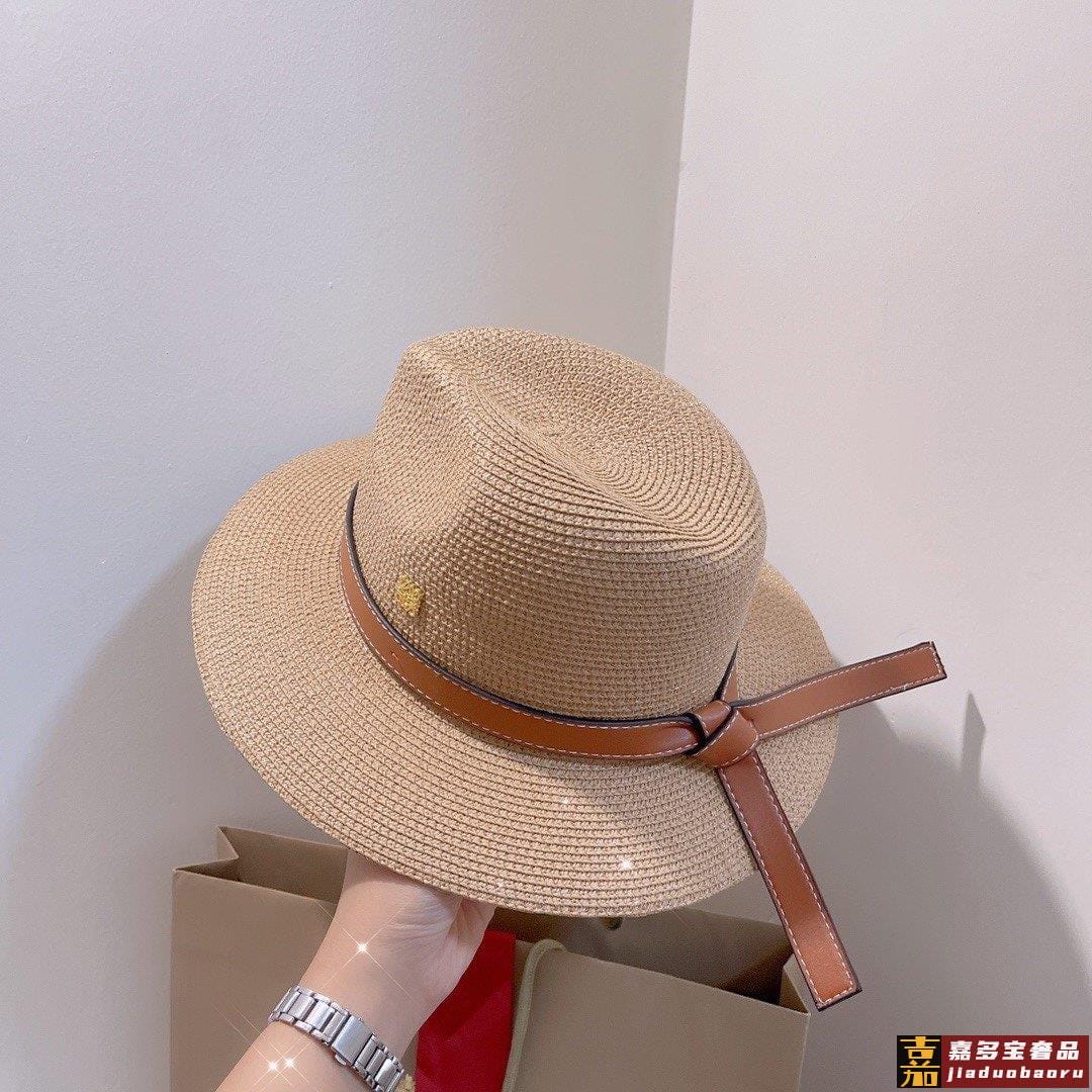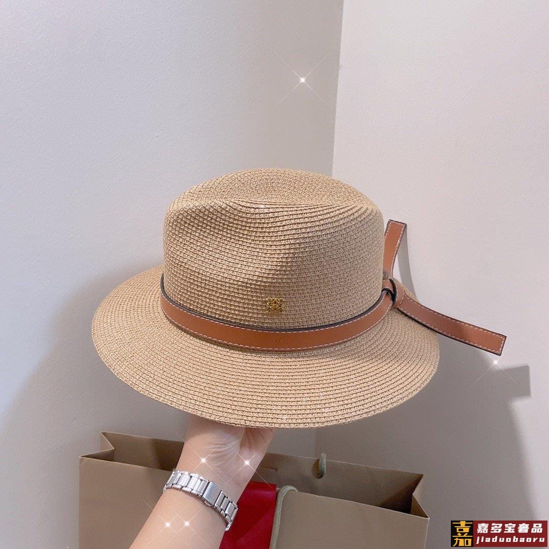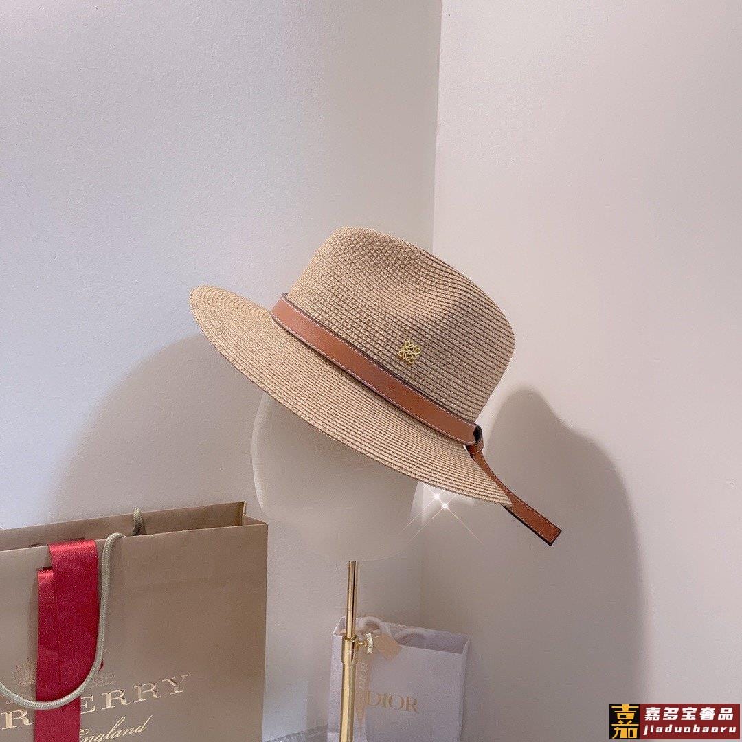 罗意威专柜新款罗意威太阳帽礼帽棕色皮边复古时尚火爆单品草遮阳