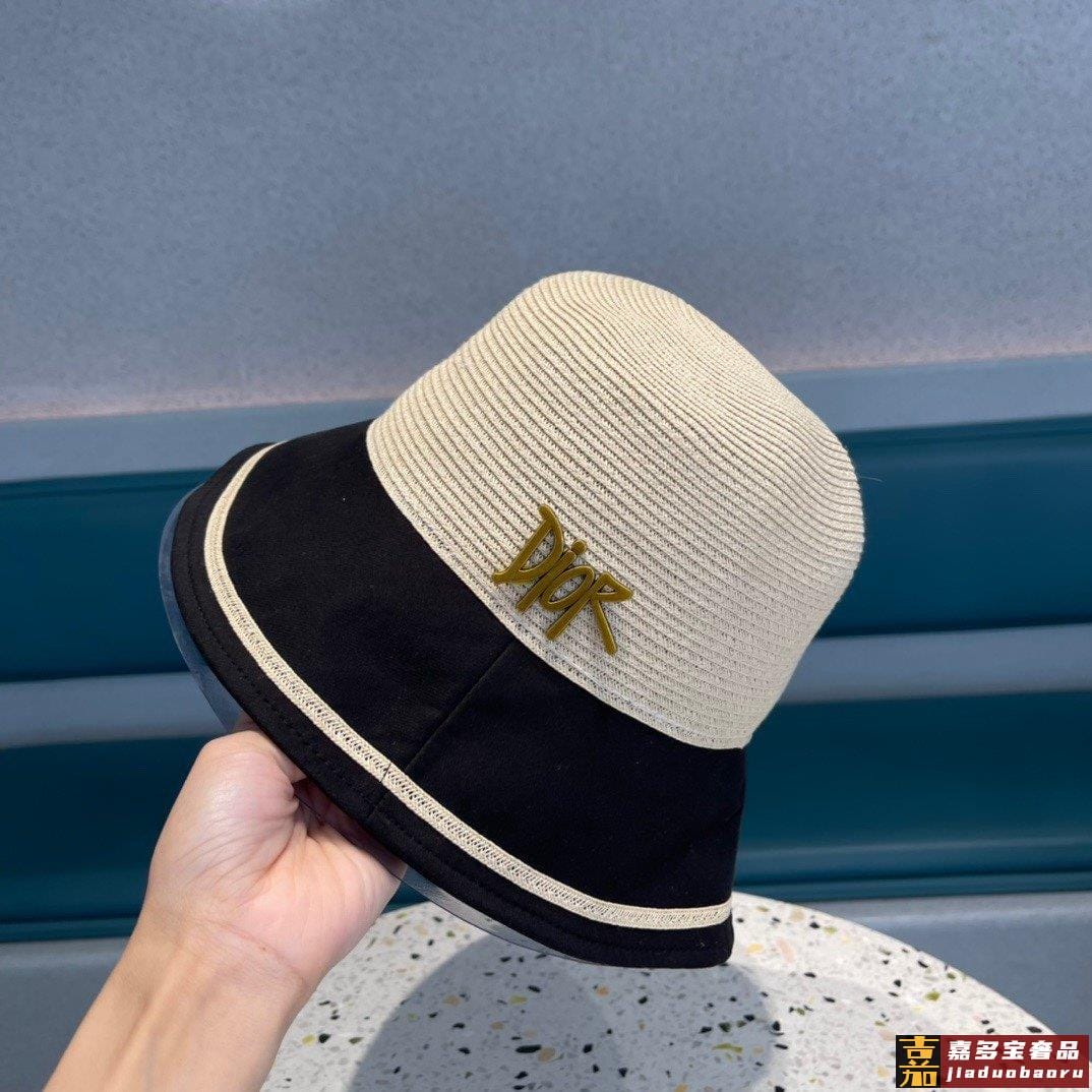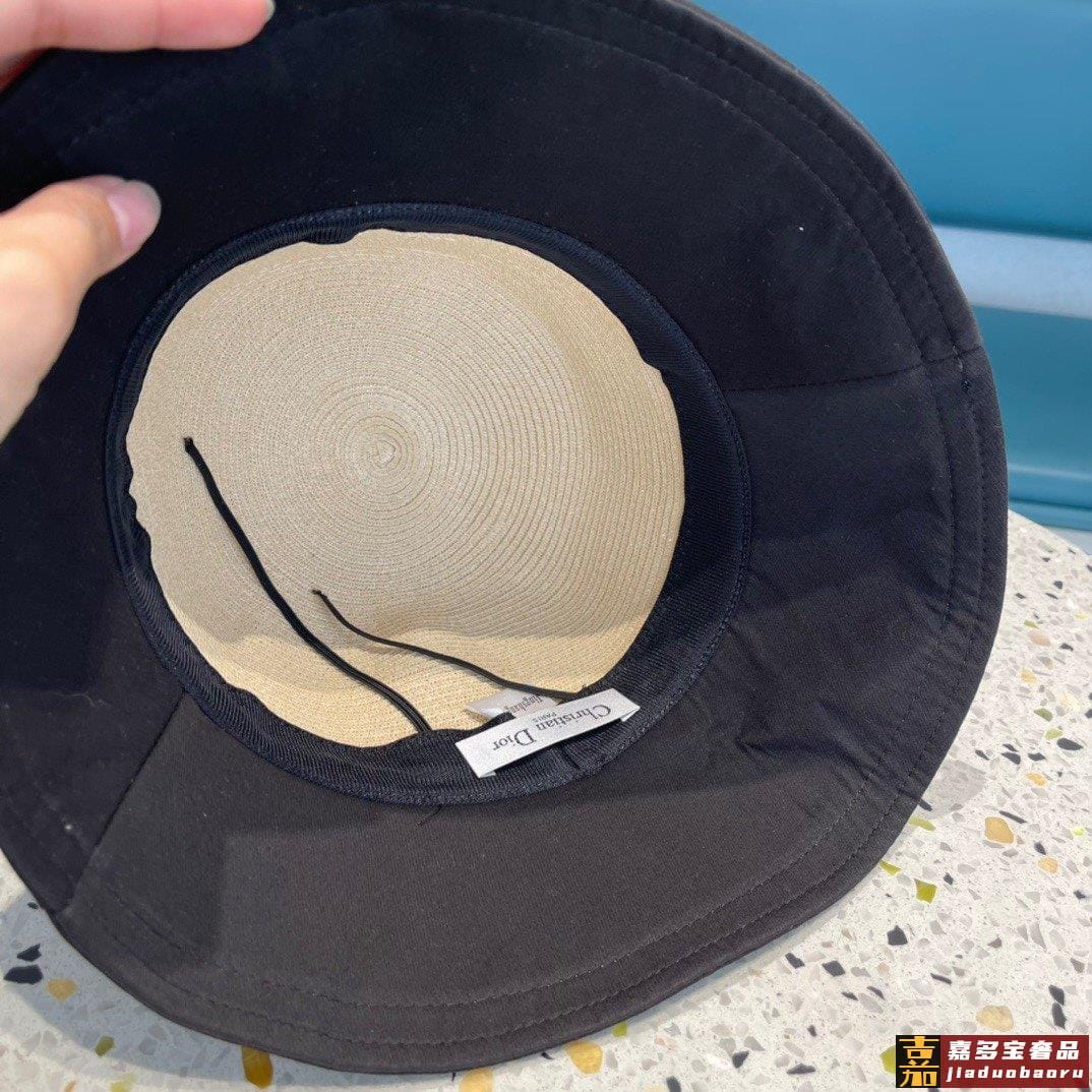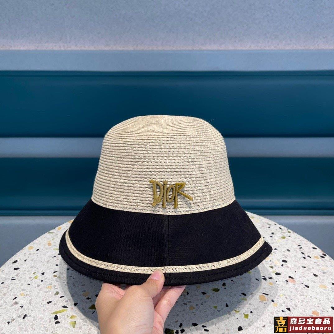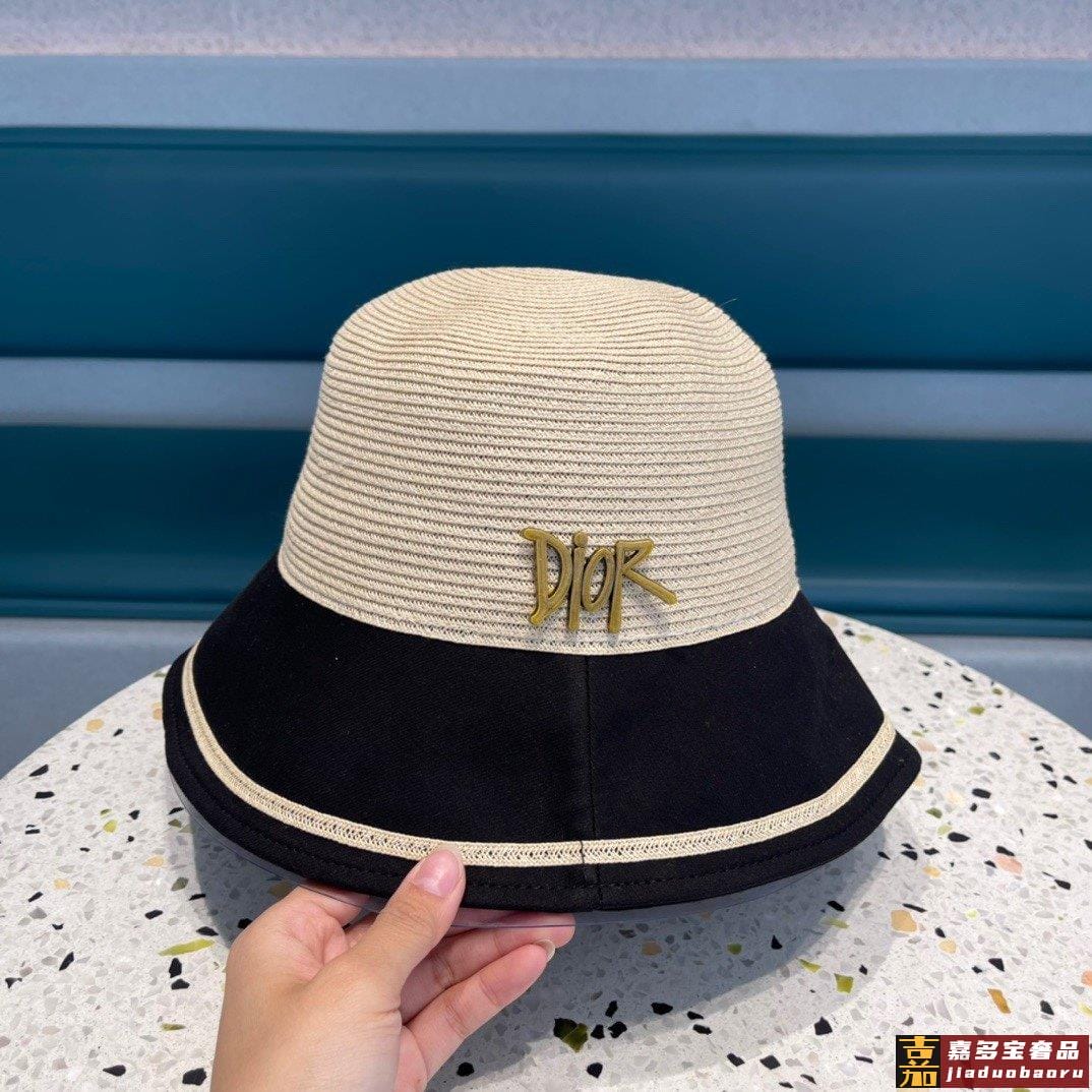 迪奥新款拼接草编遮阳草帽盆帽沙滩风简约大方百搭单品出街首选新