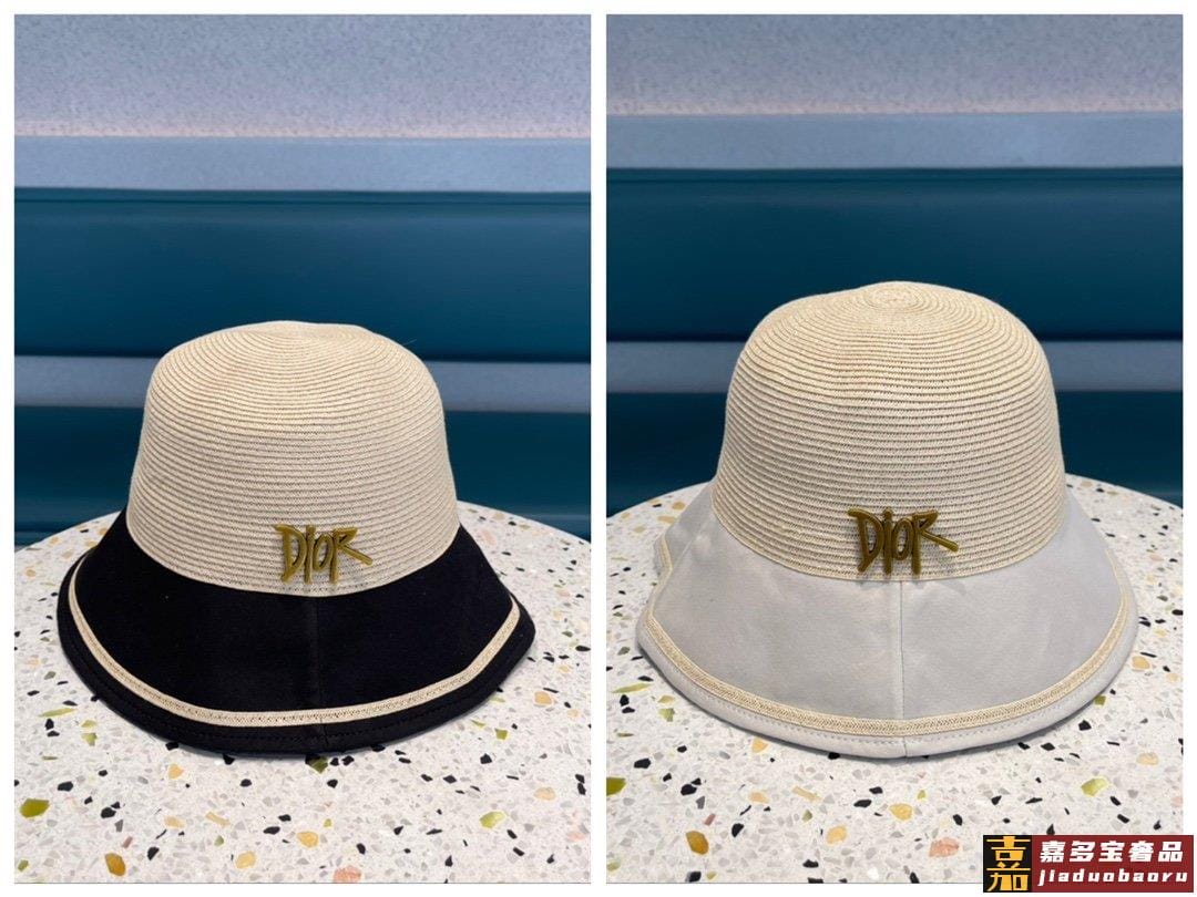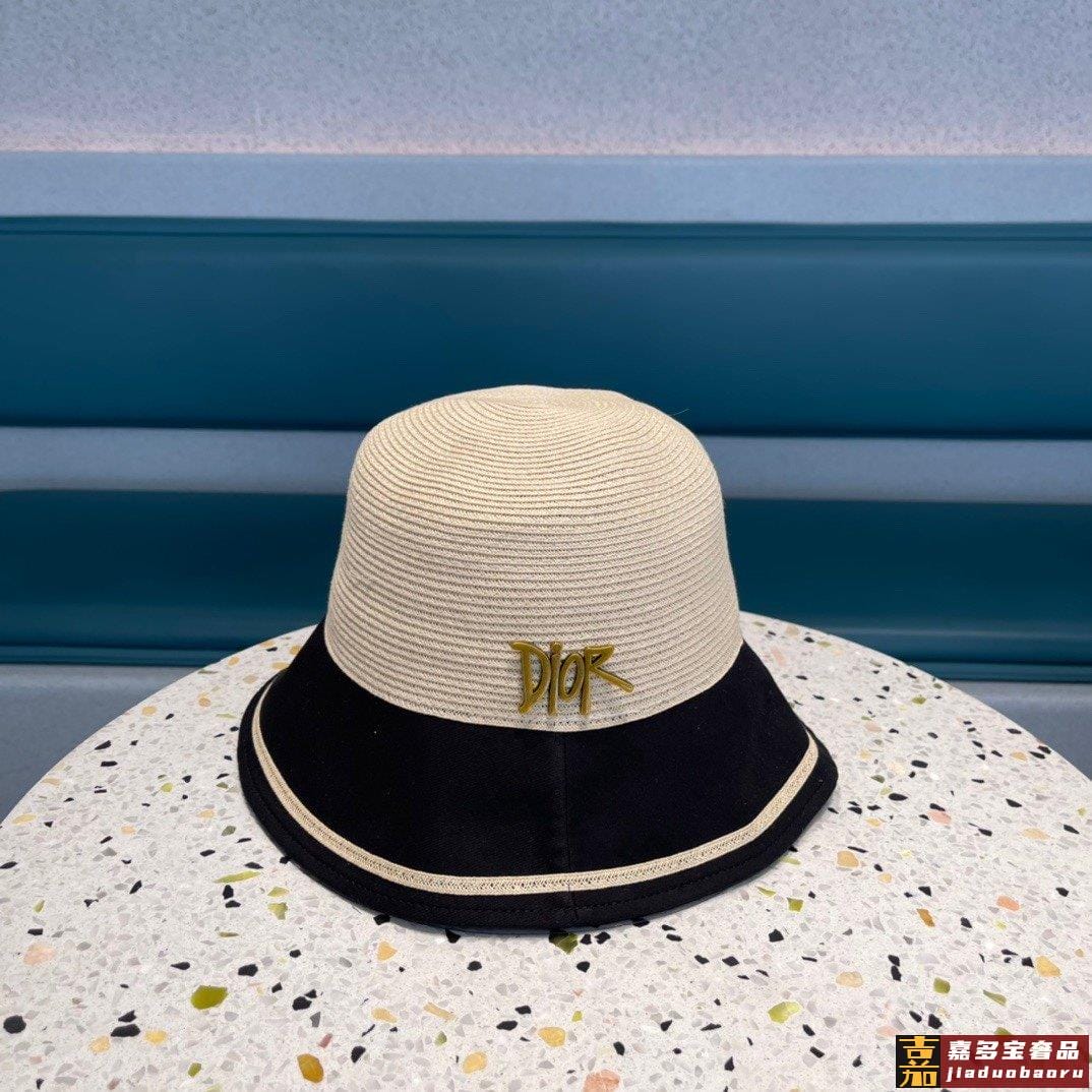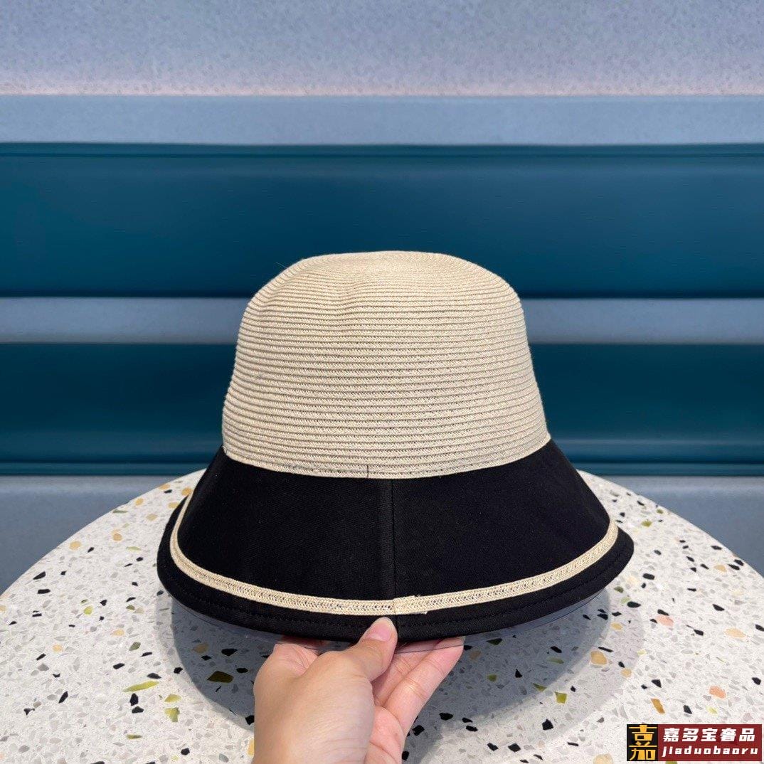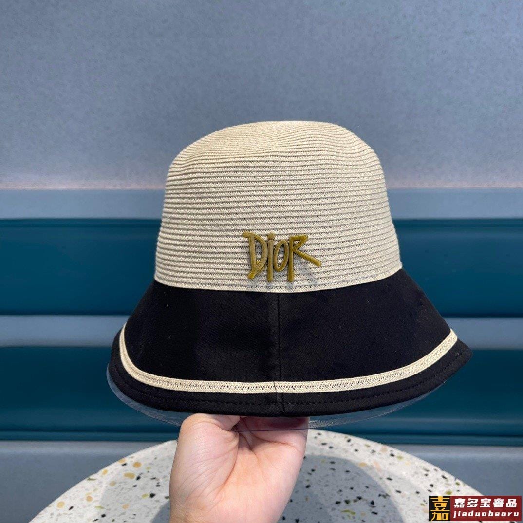 迪奥新款拼接草编遮阳草帽盆帽沙滩风简约大方百搭单品出街首选新