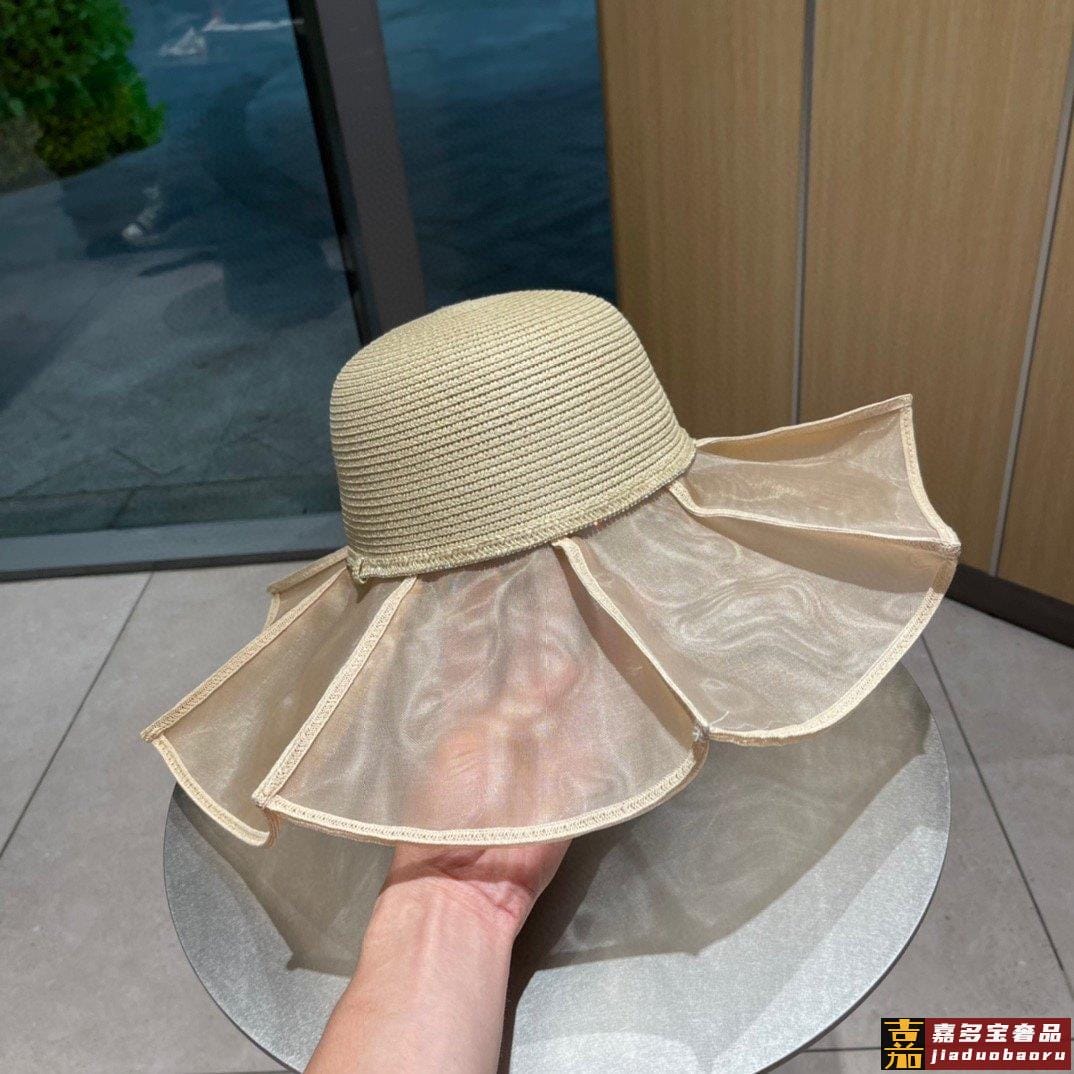 香奈儿早春新款小香风荷叶边草帽新款大帽檐草帽波浪大帽沿出游必