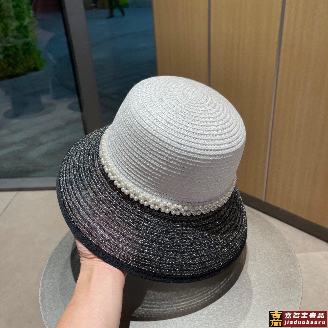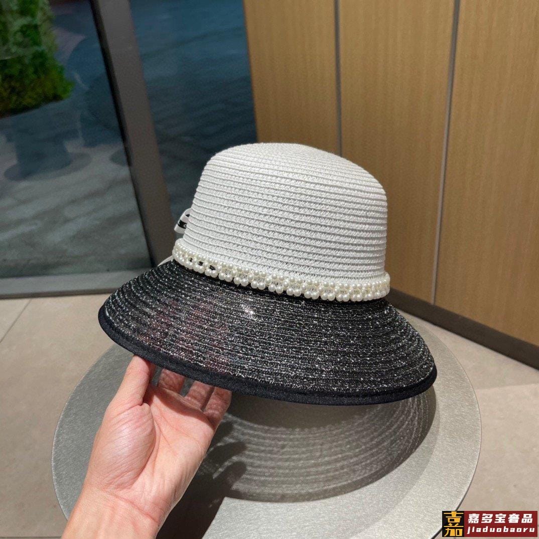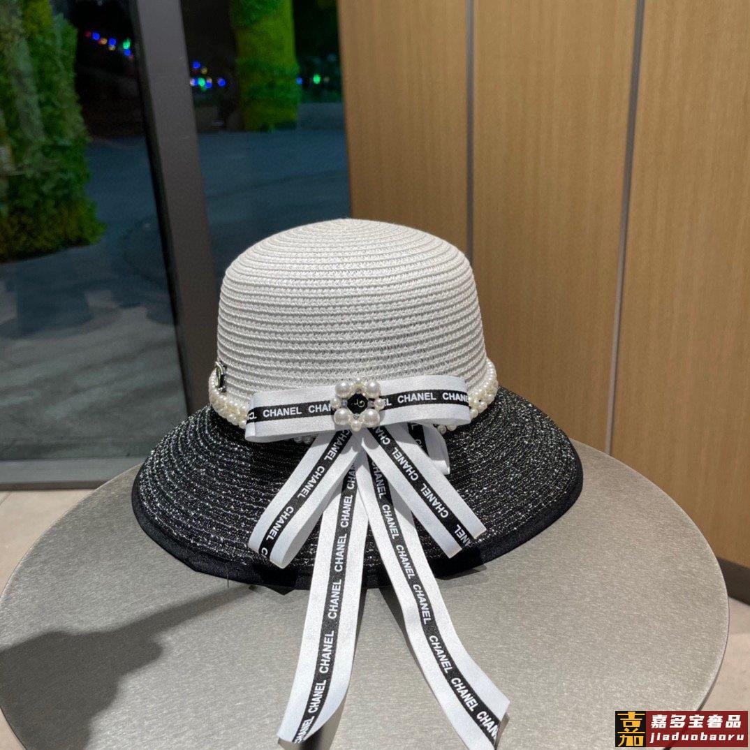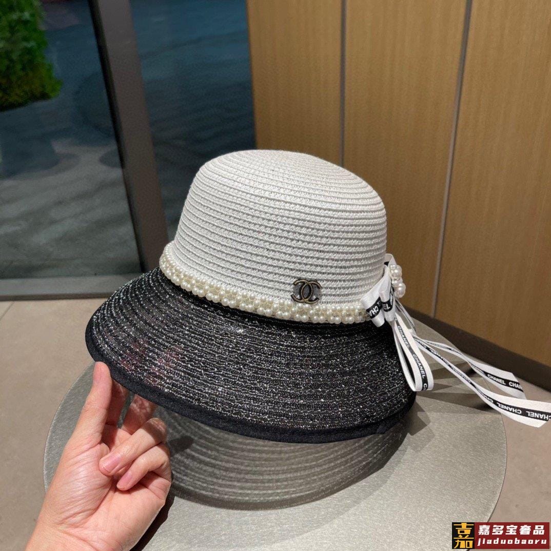 香奈儿新品蝴蝶结气质休闲草编草帽配珍珠夏日遮阳独家百搭风格