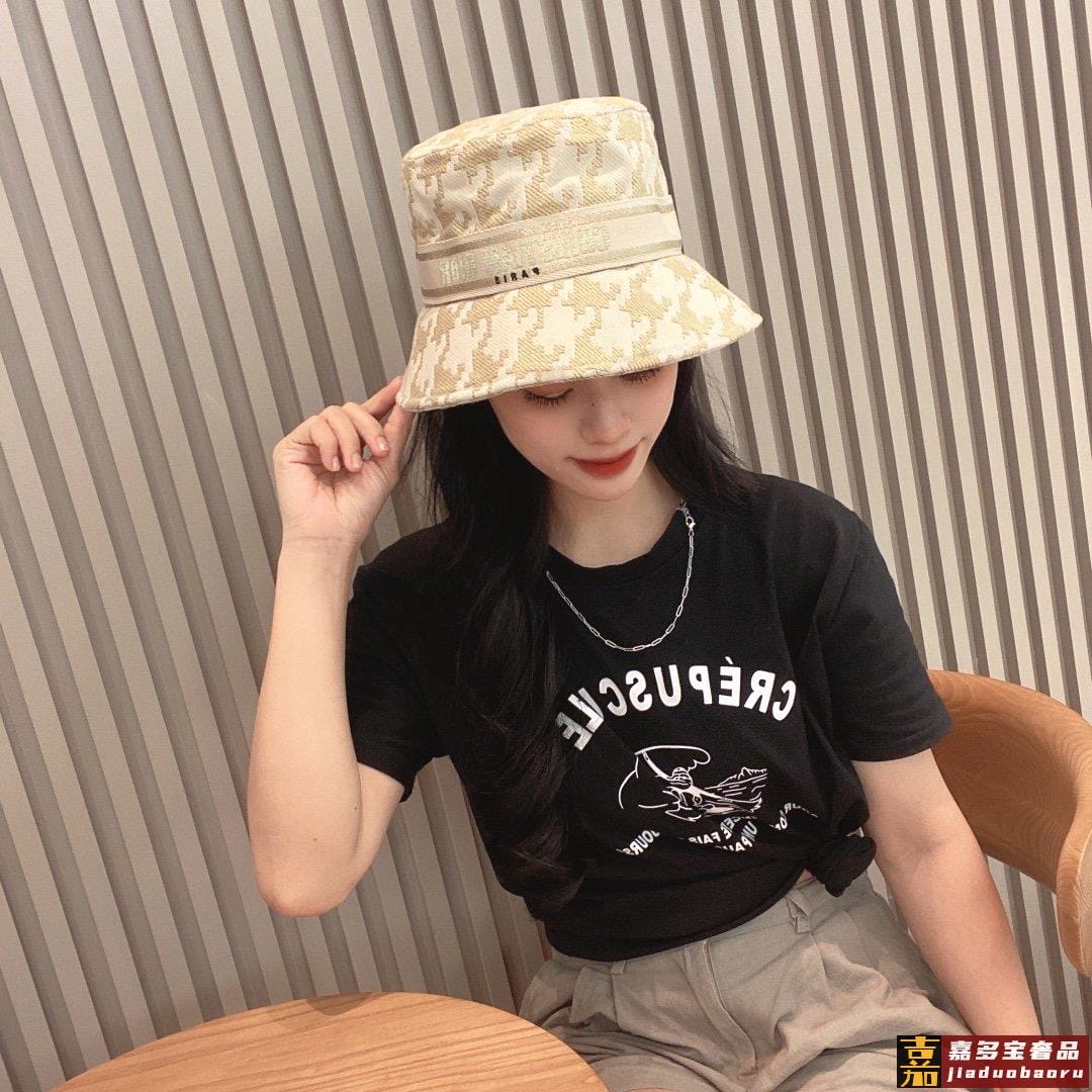 迪奥专柜爆款千鸟格款渔夫帽大牌同步新款上架四季必入款