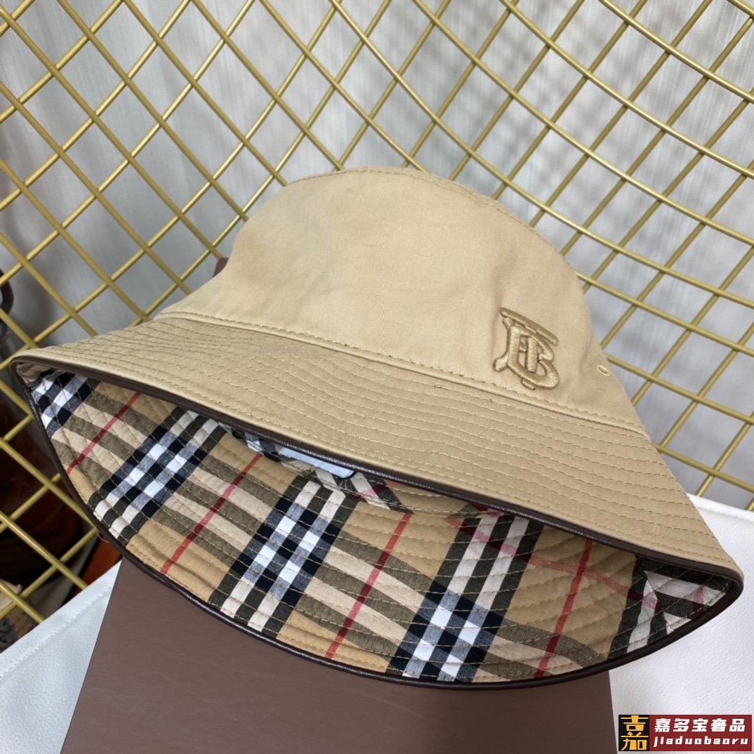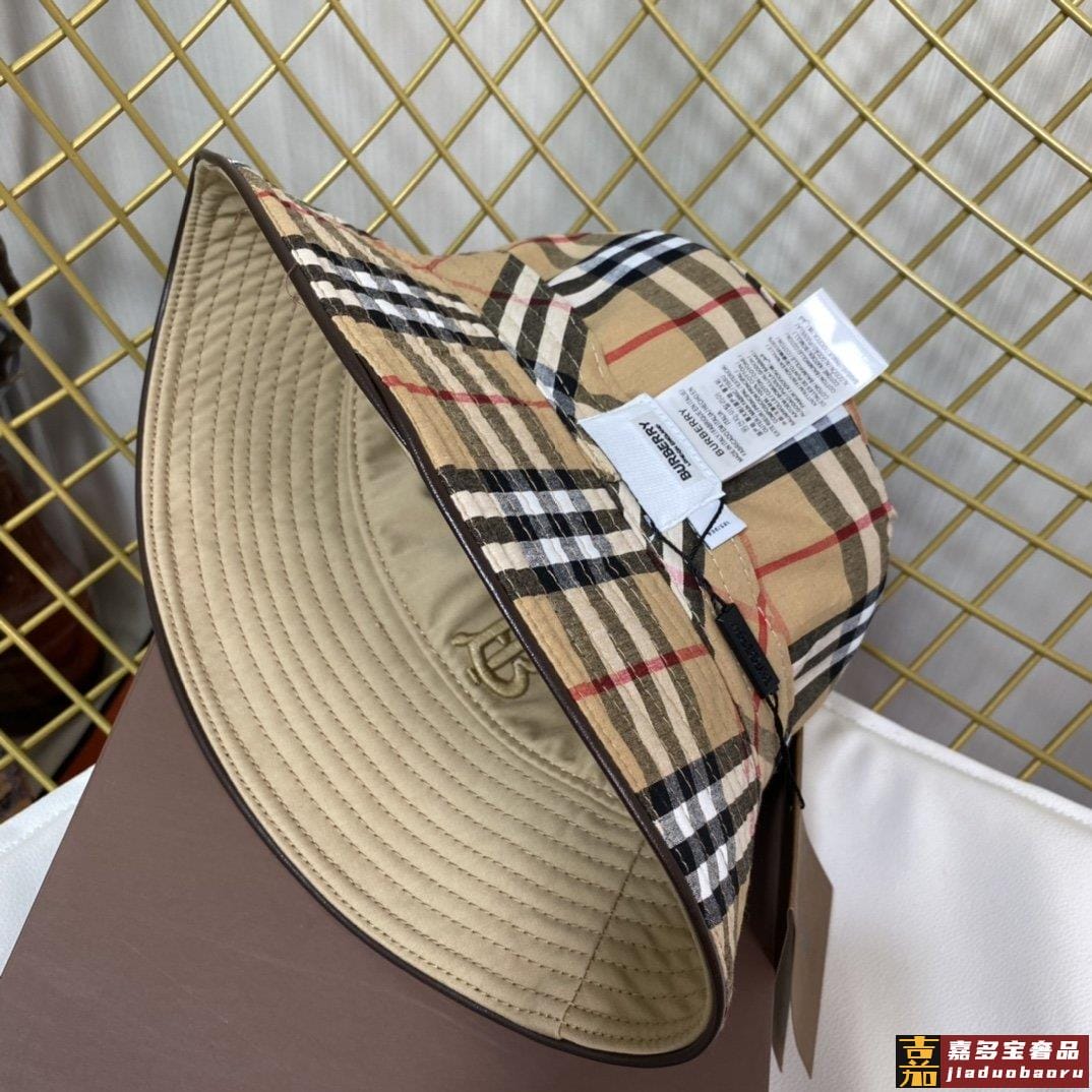 博柏利新款格子刺绣渔夫帽经典百搭一年四季随意配无论你穿的酷帅