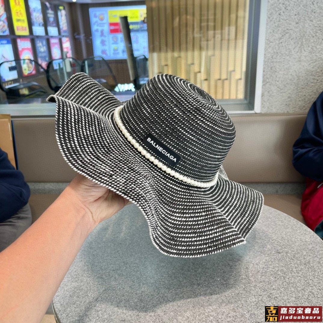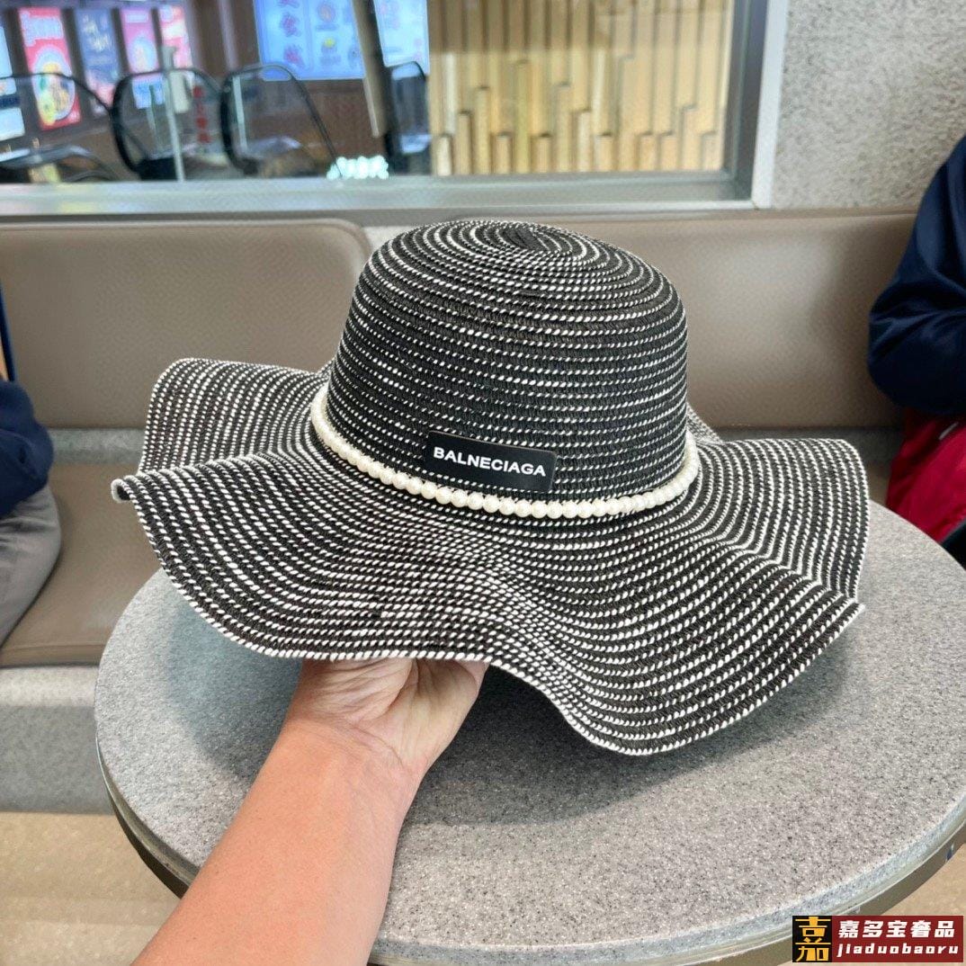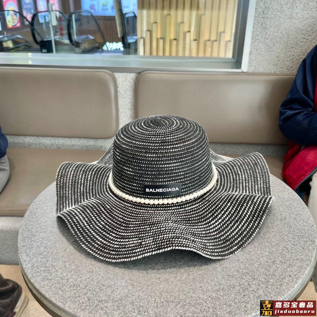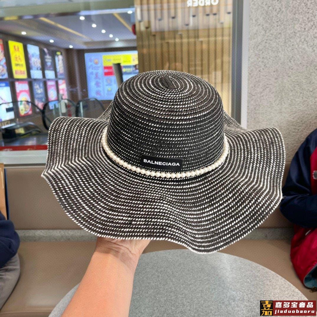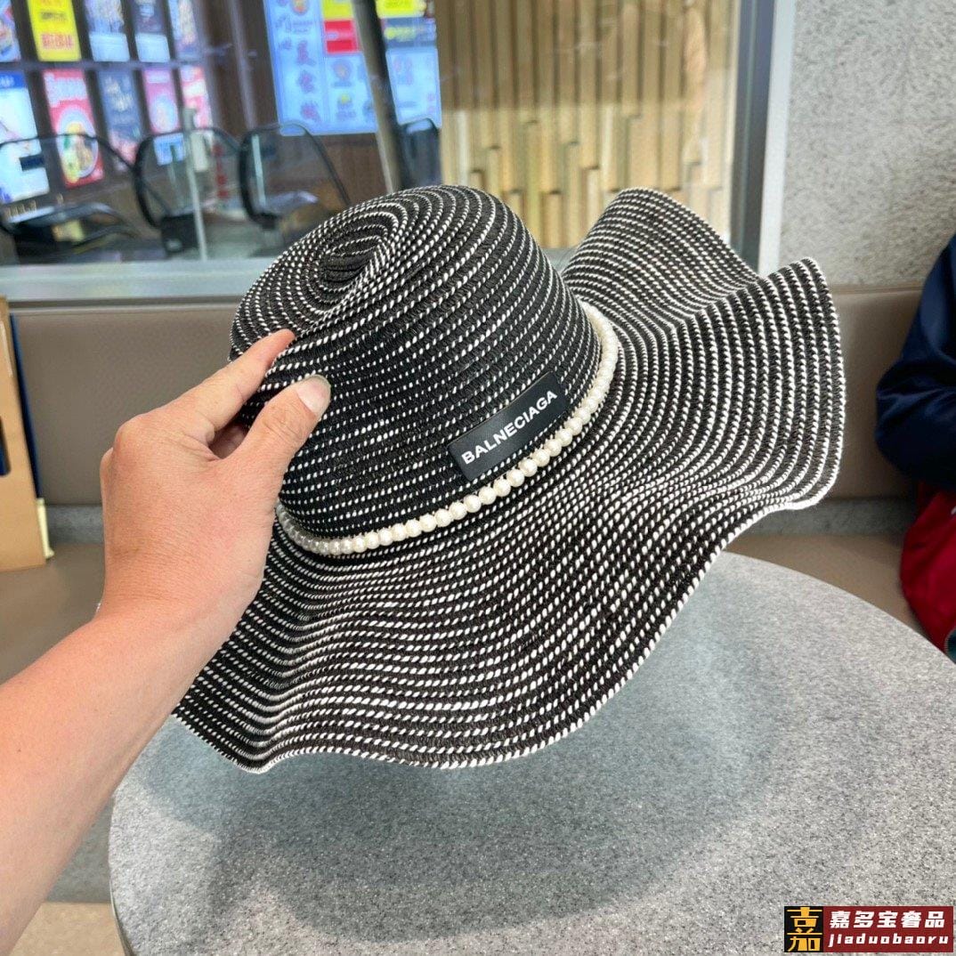 巴黎世家早春新款韩版波浪珍珠休闲草帽时尚百搭色网红爆款出门必