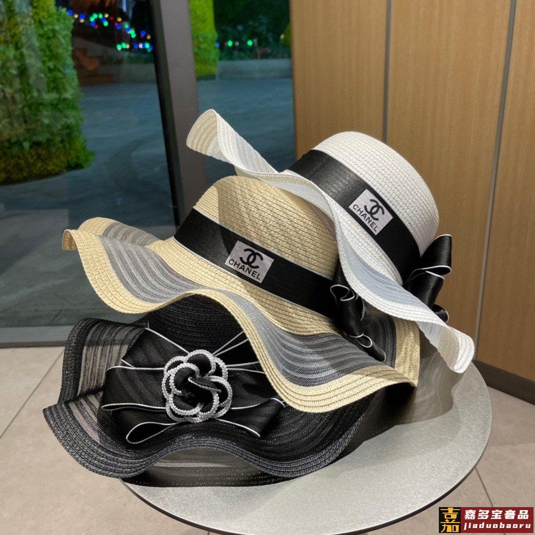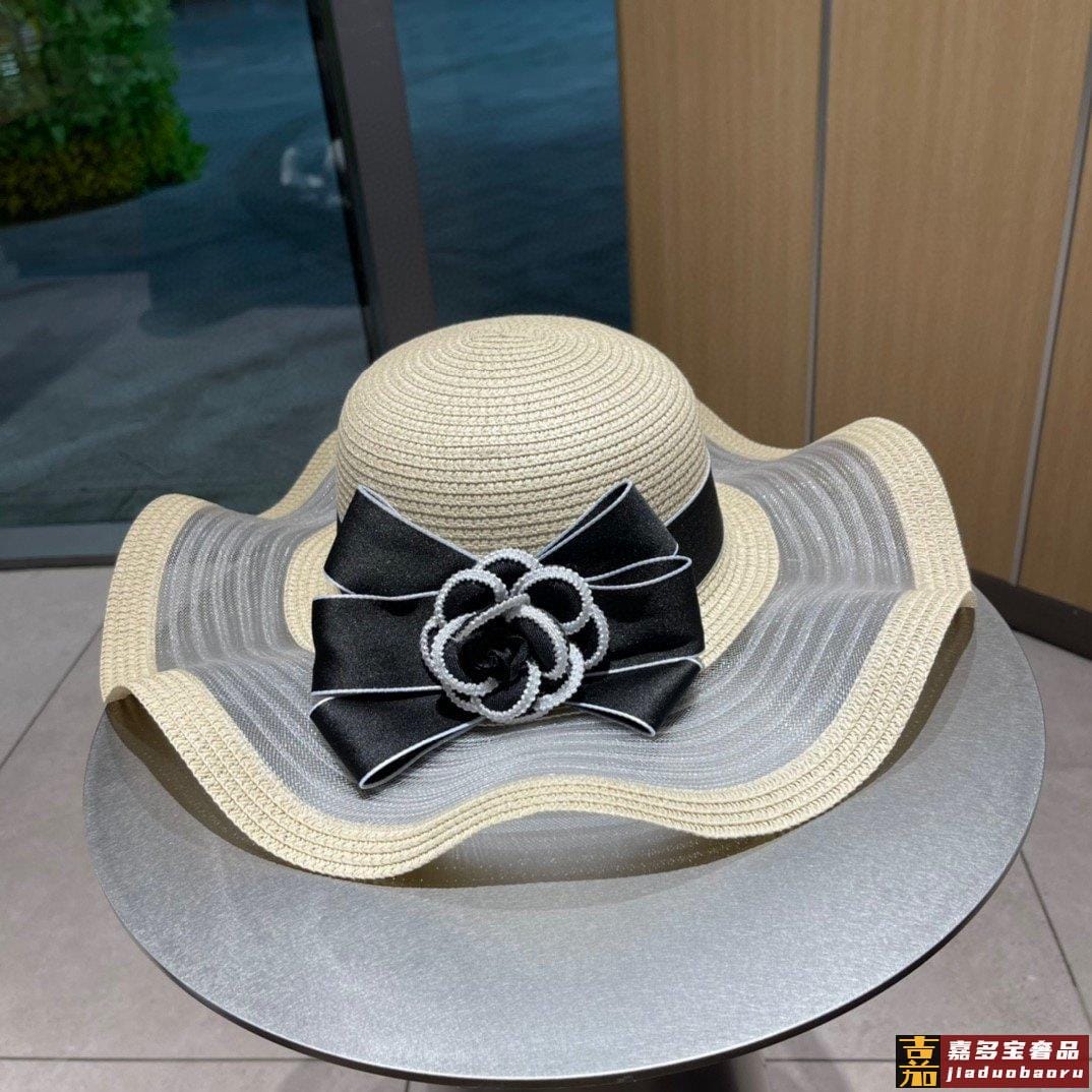 香奈儿早春新款简约蝴蝶结配饰珍珠超柔软草帽面料细节设计超美简