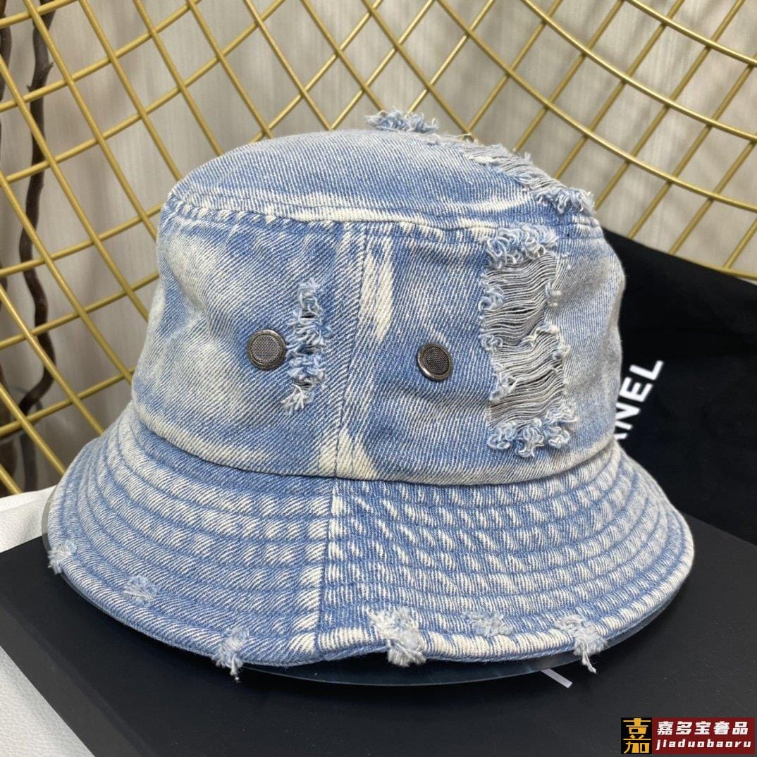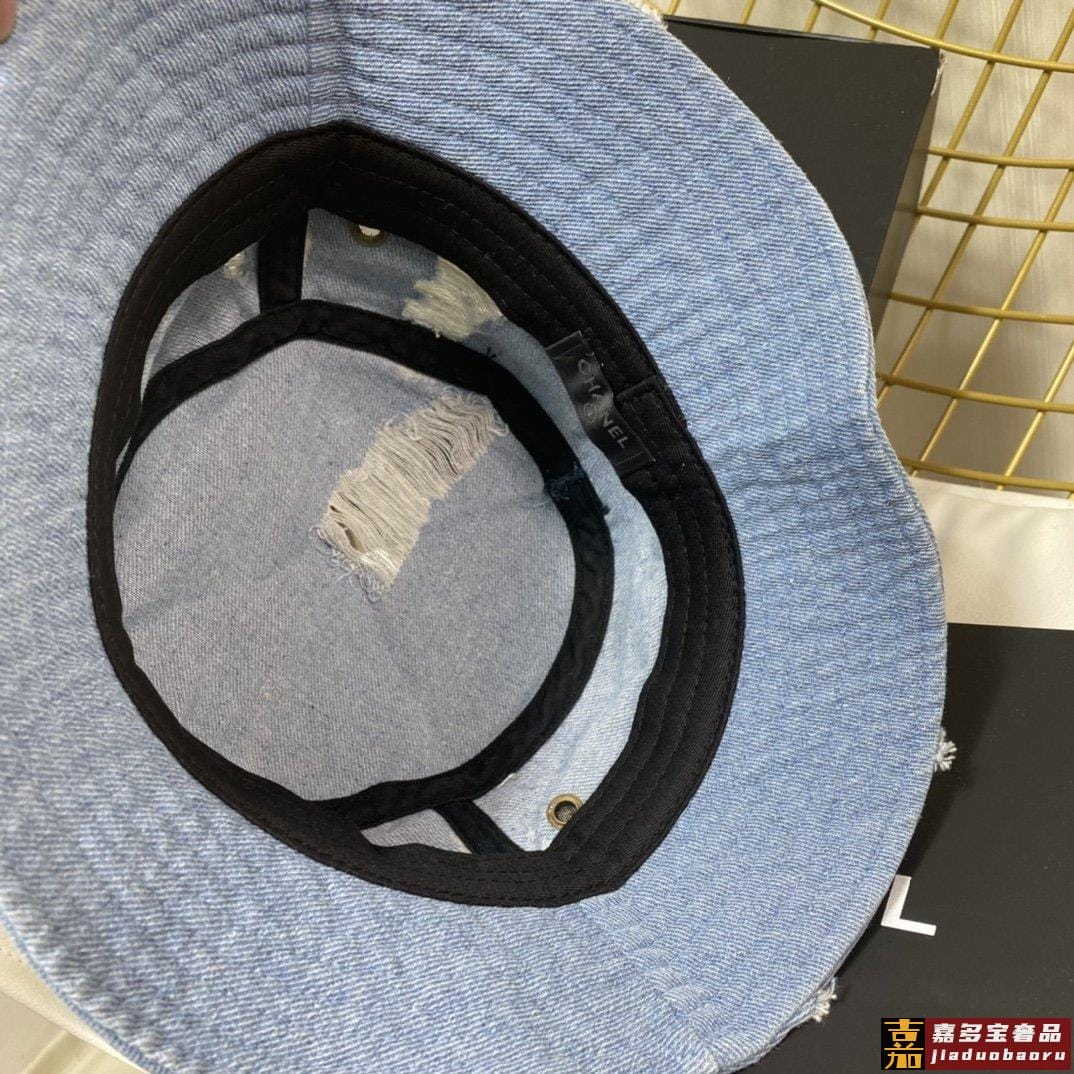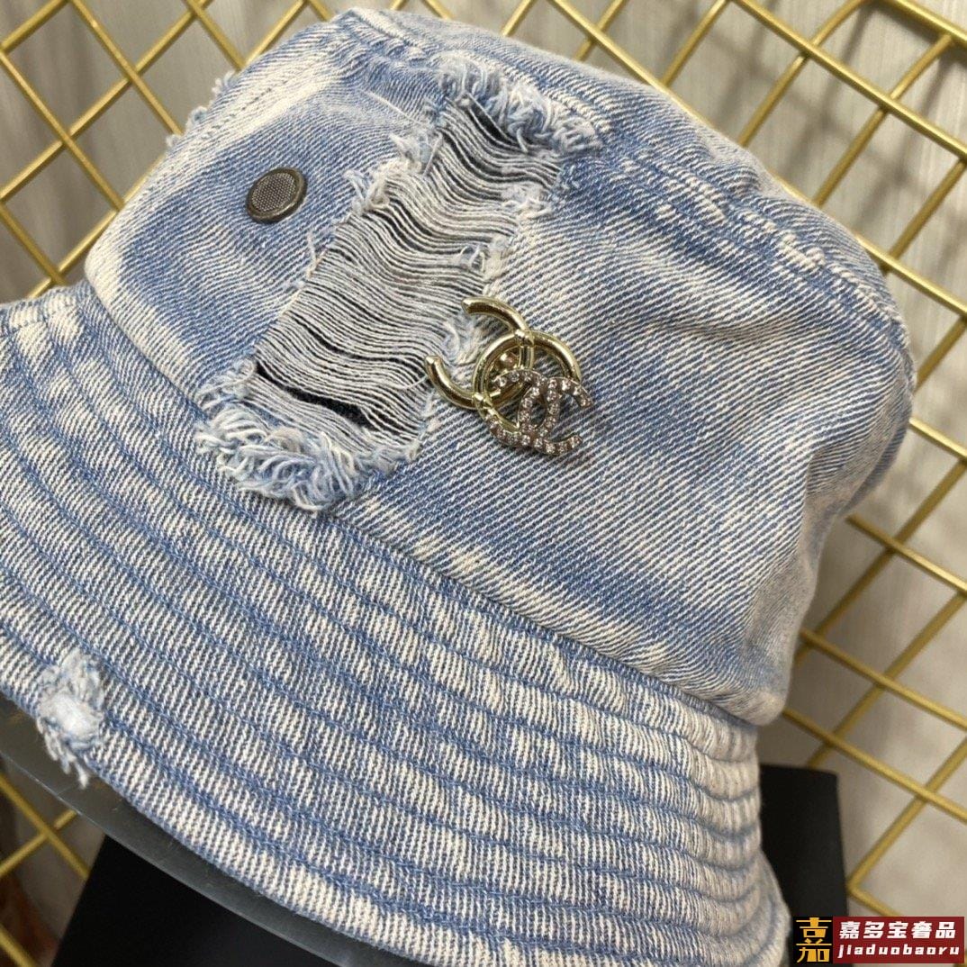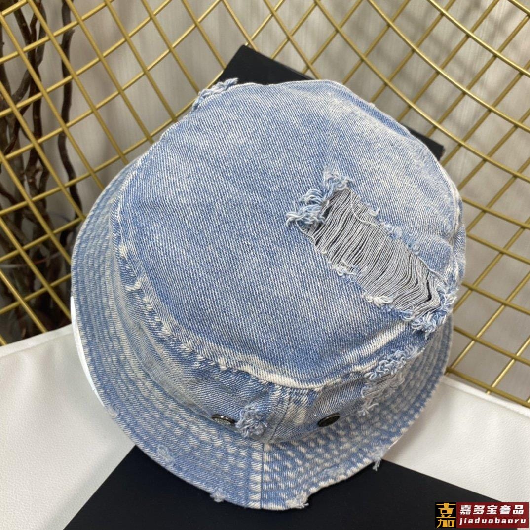 小香新款渔夫帽精致绣线标志小香风小香经典破洞牛仔时尚百搭款香