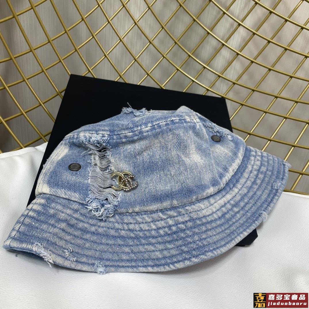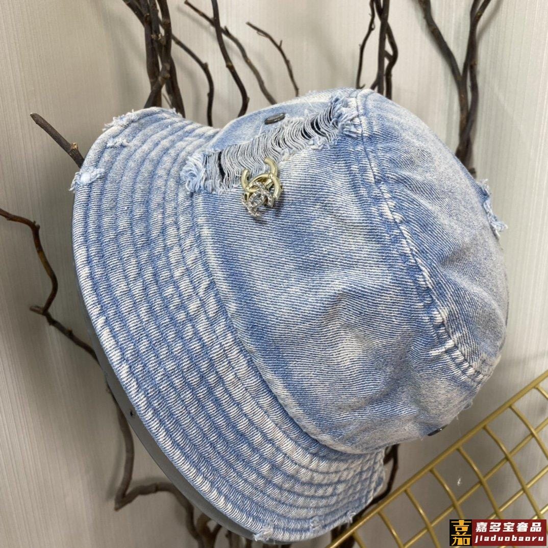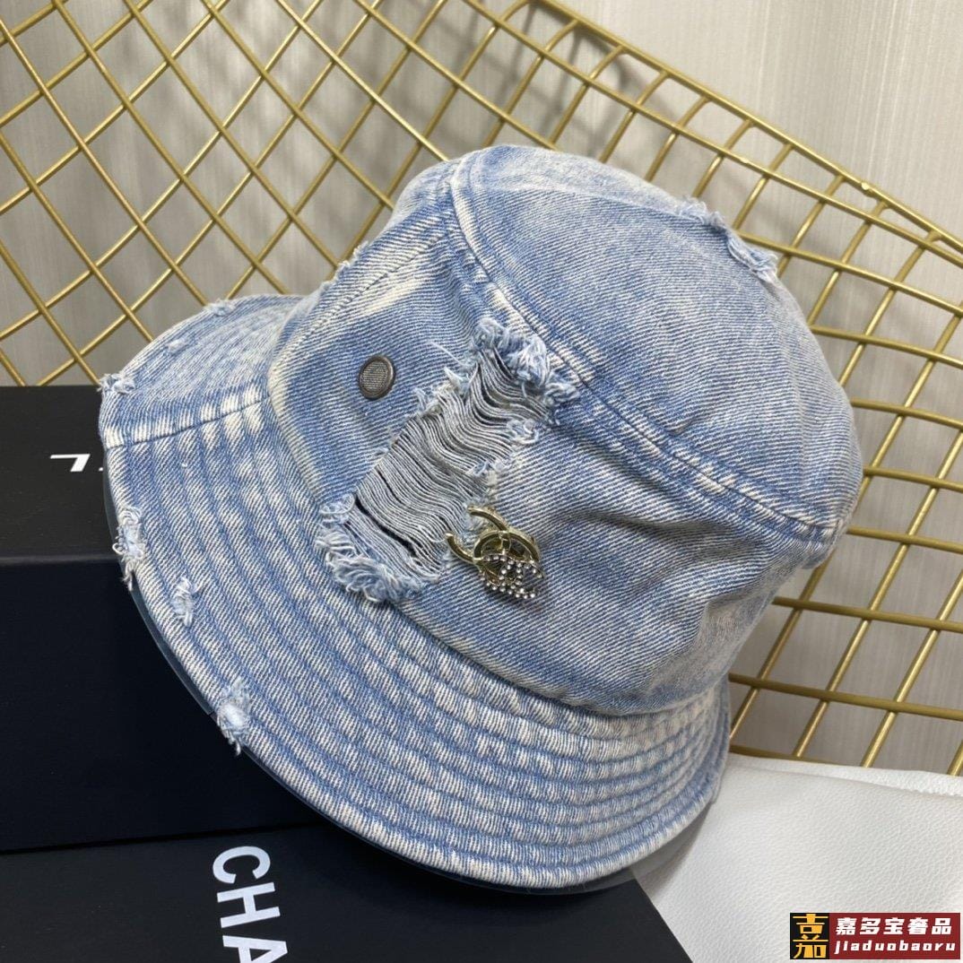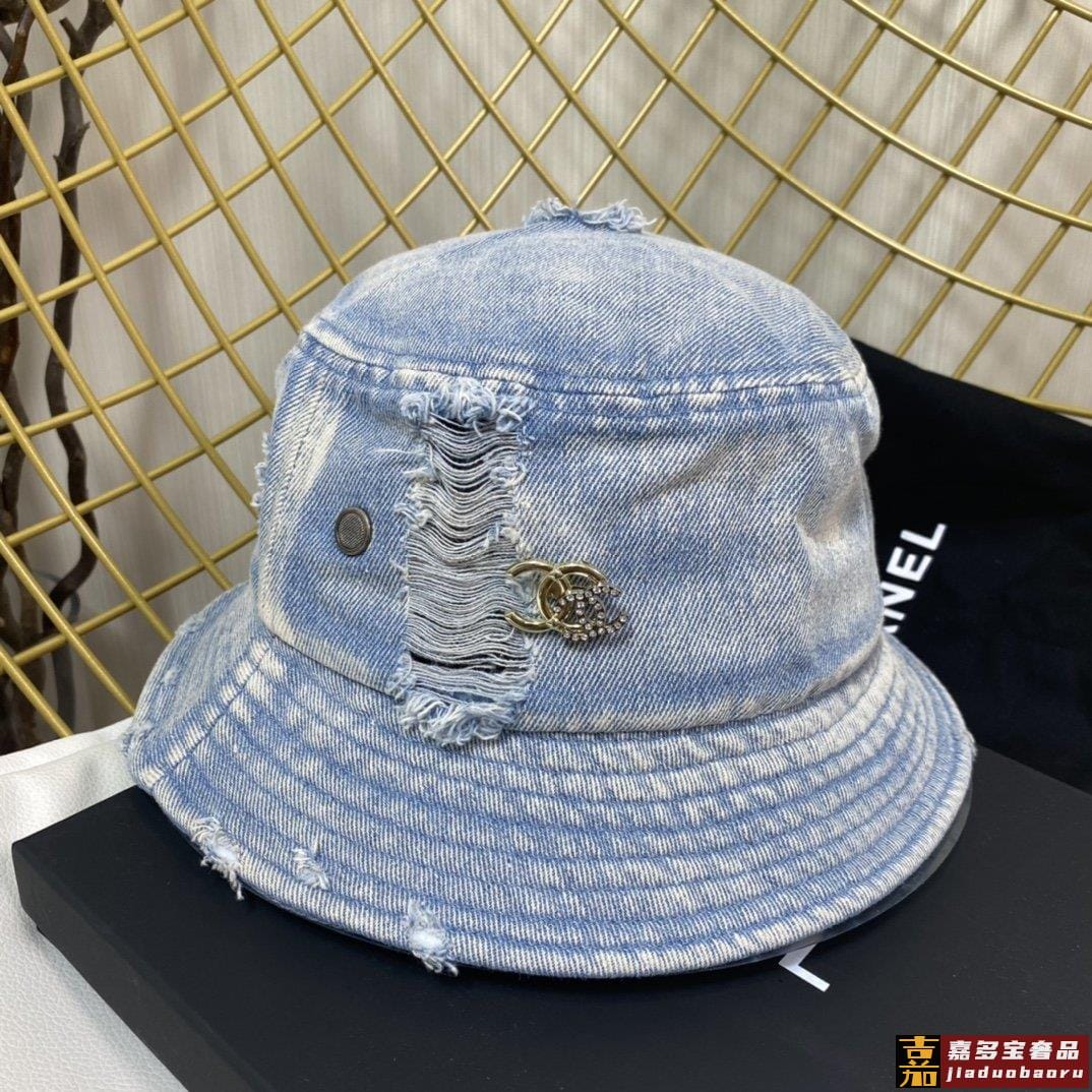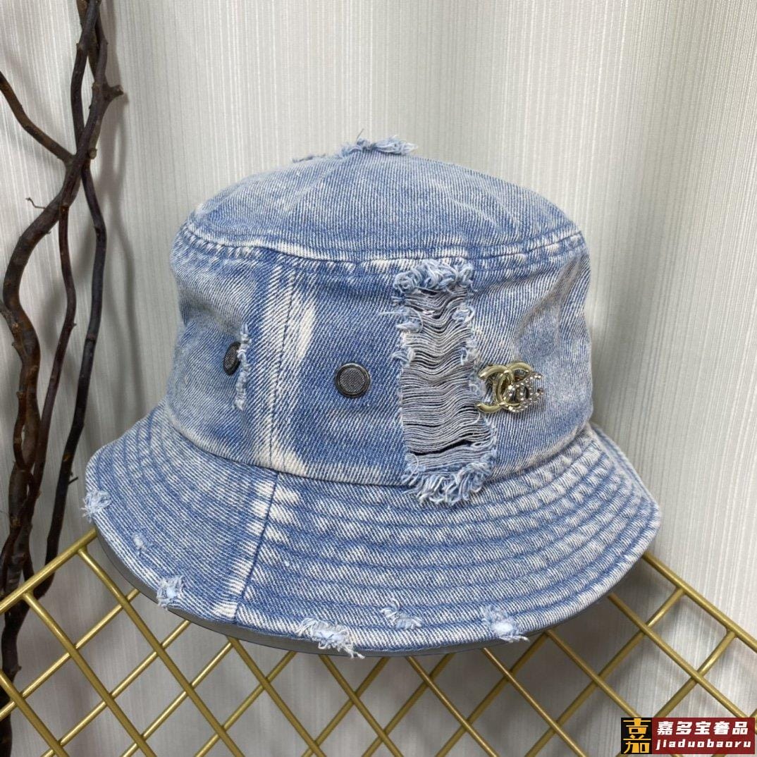 小香新款渔夫帽精致绣线标志小香风小香经典破洞牛仔时尚百搭款香