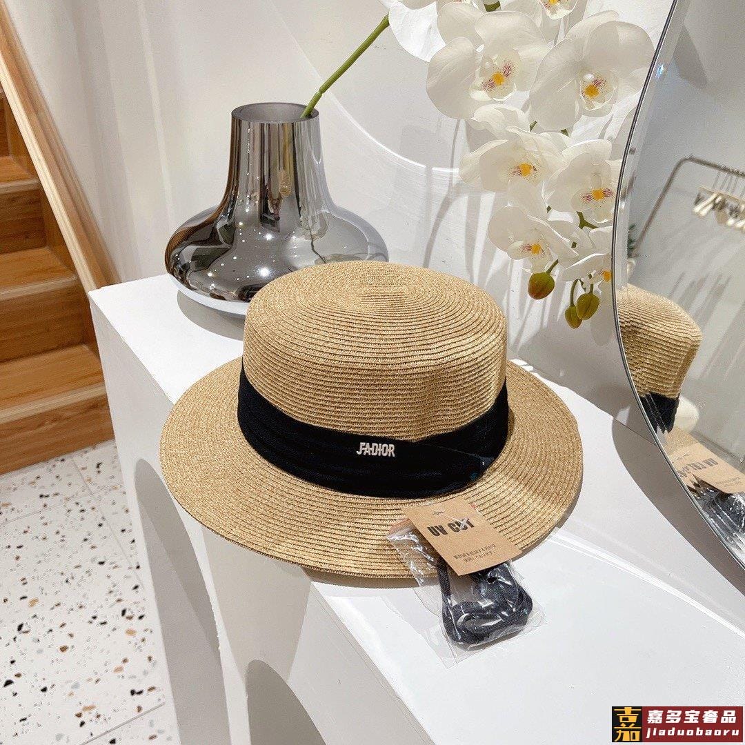 新款平顶草帽纯色简约的织带凸显设计感和优雅气质将小女人气质完