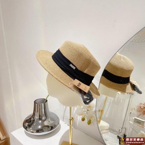迪奥新款金丝草编遮阳草帽盆帽沙滩风简约大方百搭单品出街首选新