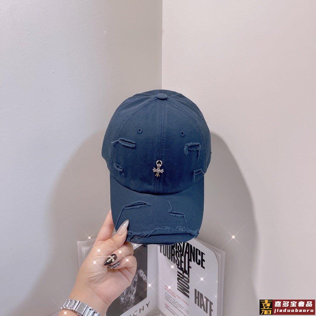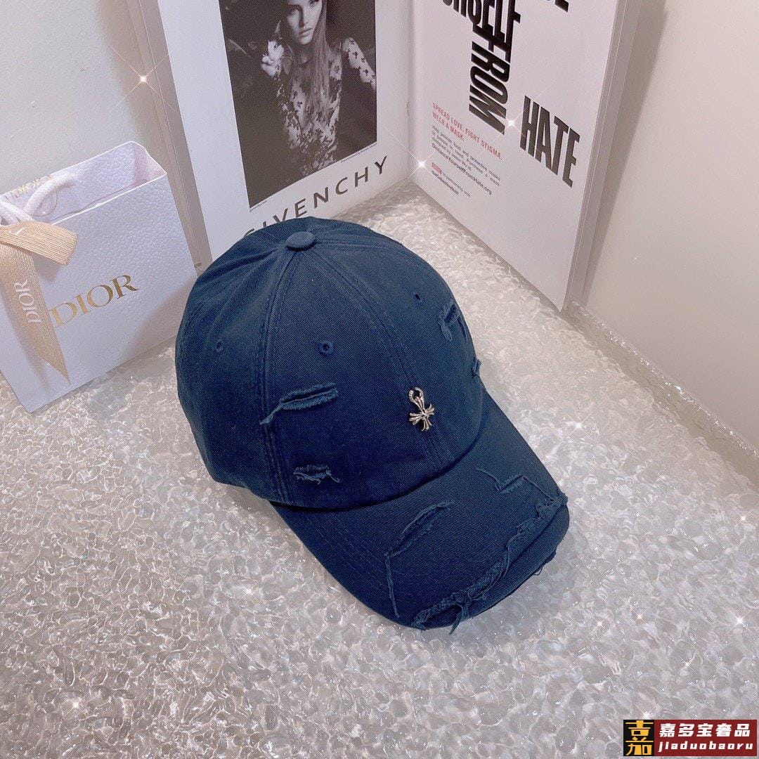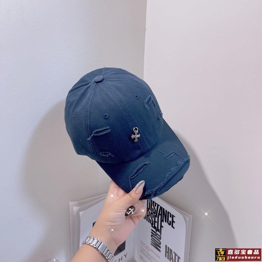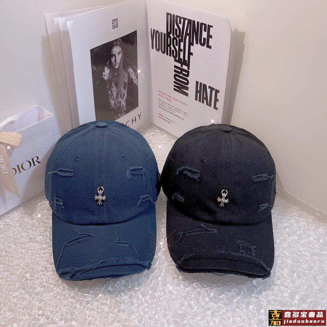 克罗心新款破洞街头风棉布棒球帽个性时尚款经典十字架标志休闲带