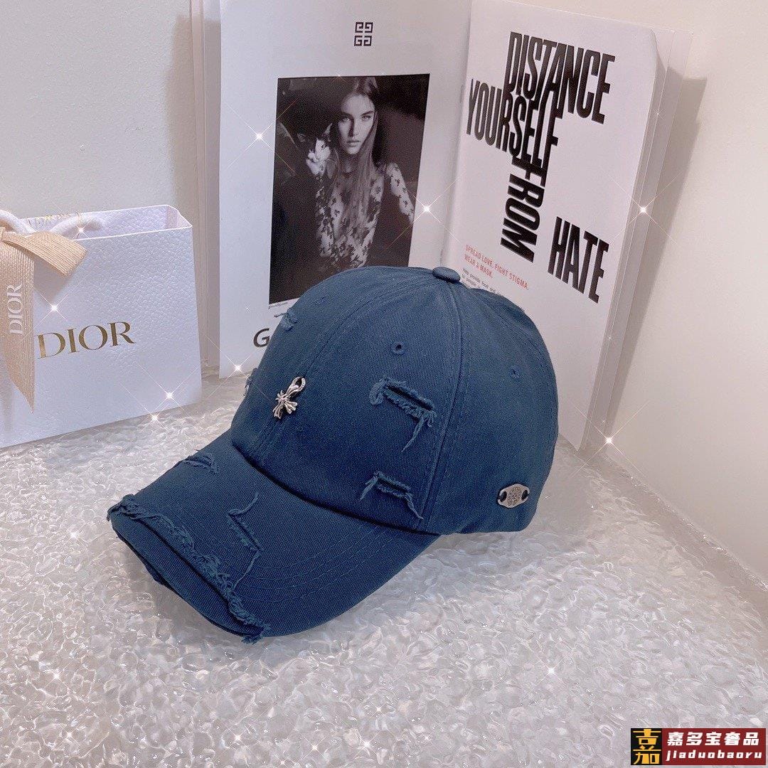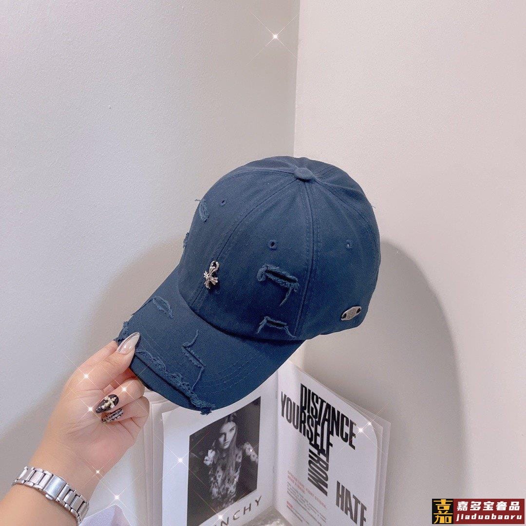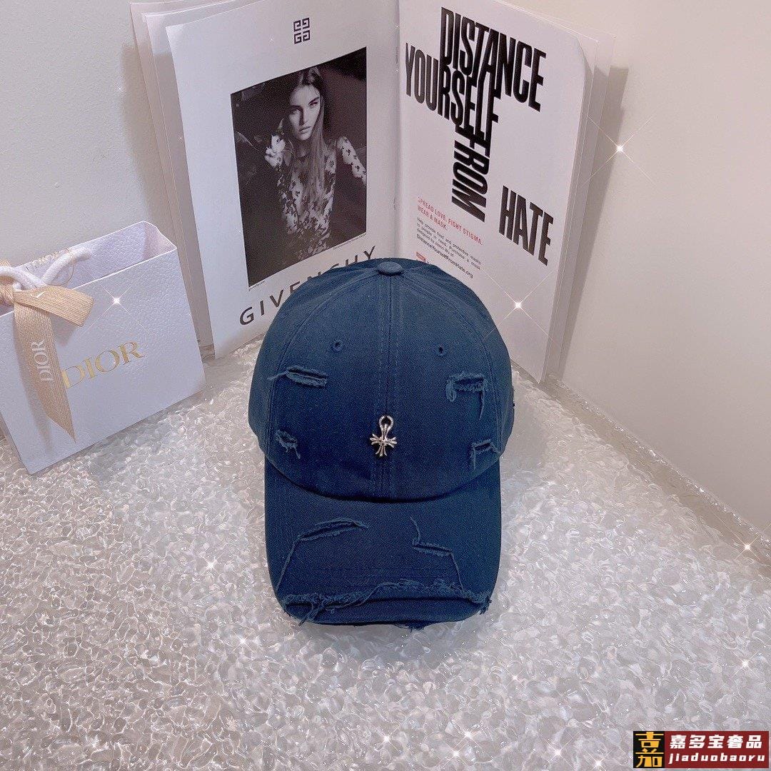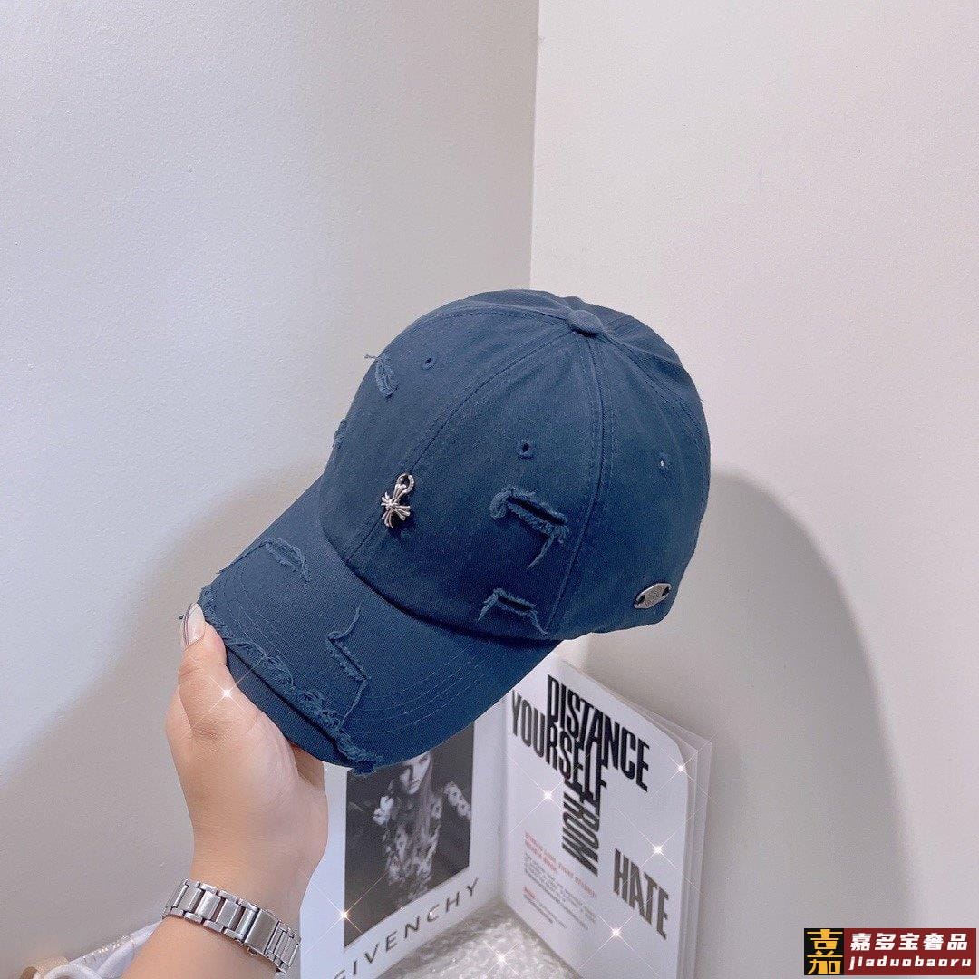 克罗心新款破洞街头风棉布棒球帽个性时尚款经典十字架标志休闲带