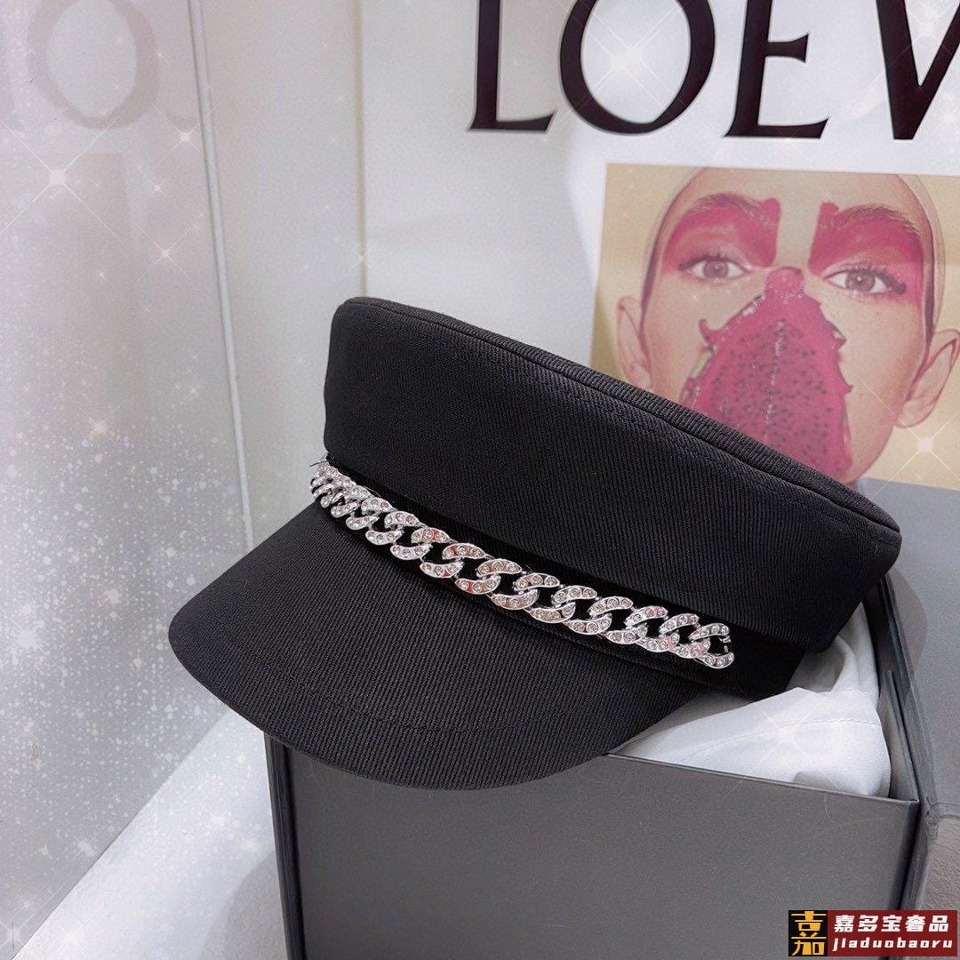 亚力山大王新款斜纹棉军帽报童帽高端定制名媛闪钻链条酷酷的时尚