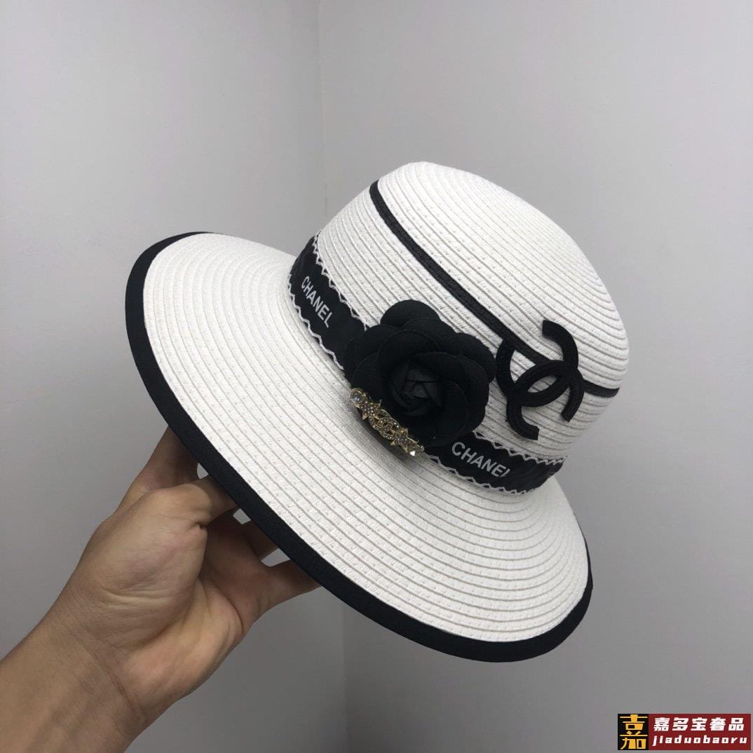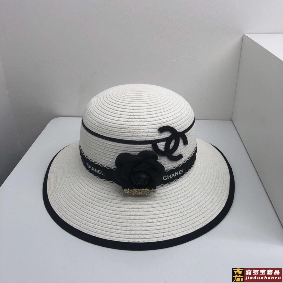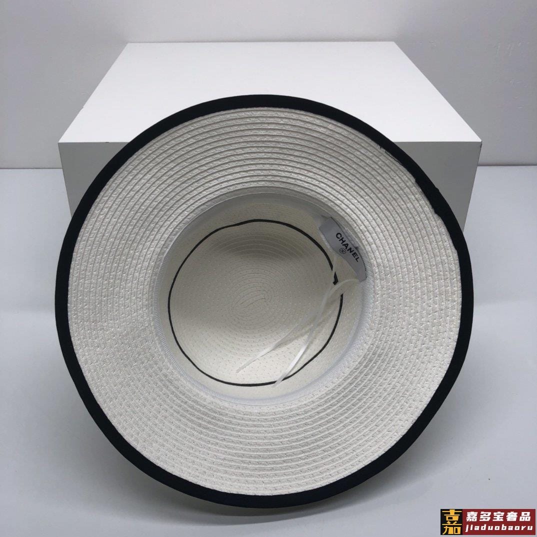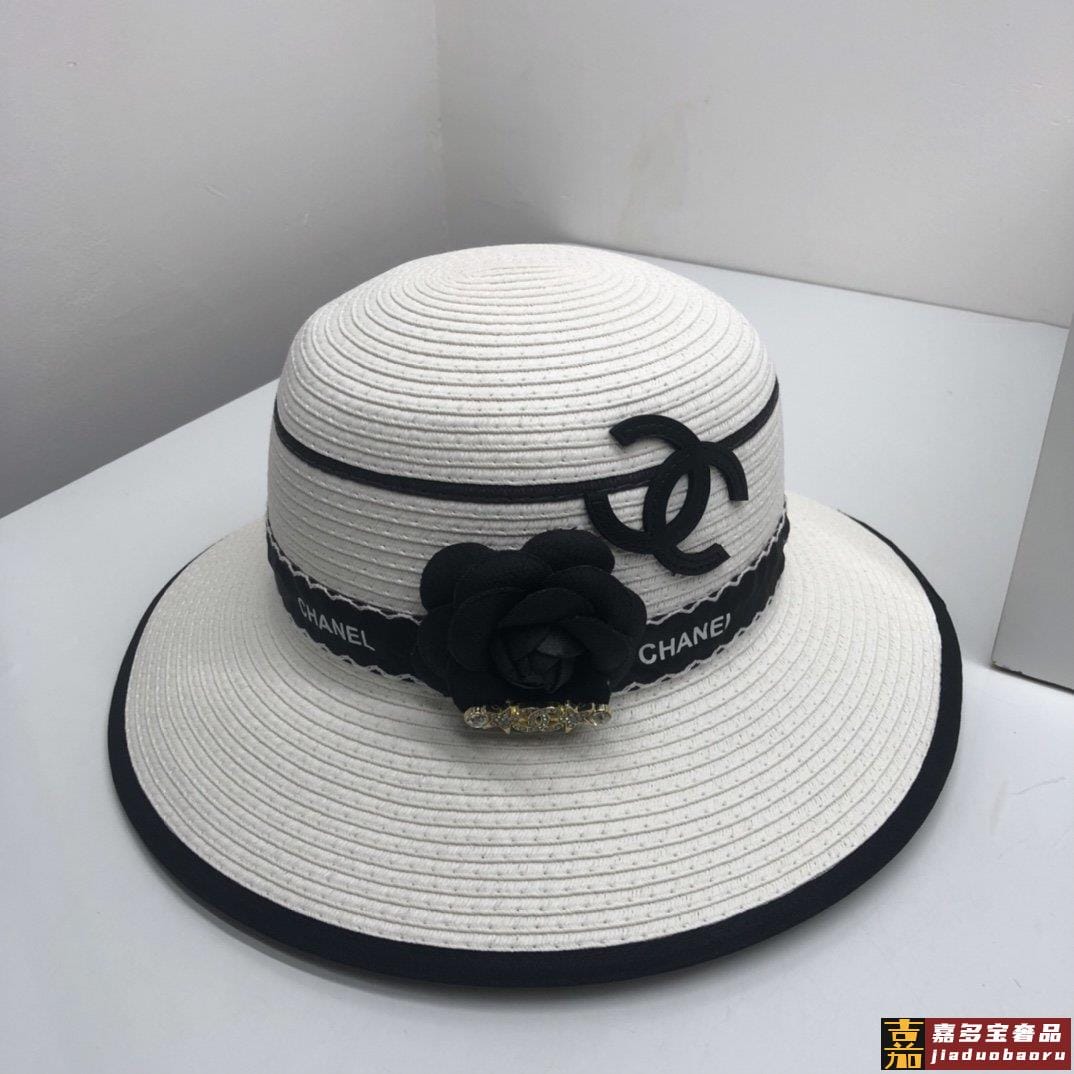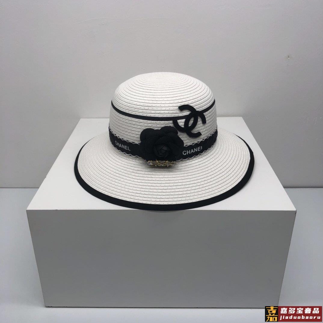 香奈儿新品小香山茶花包边草帽珍珠链条精致度假风圆顶草帽名媛风