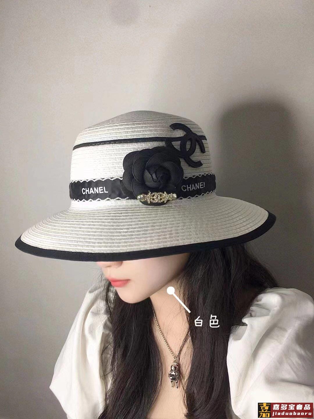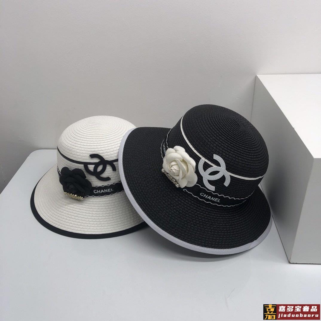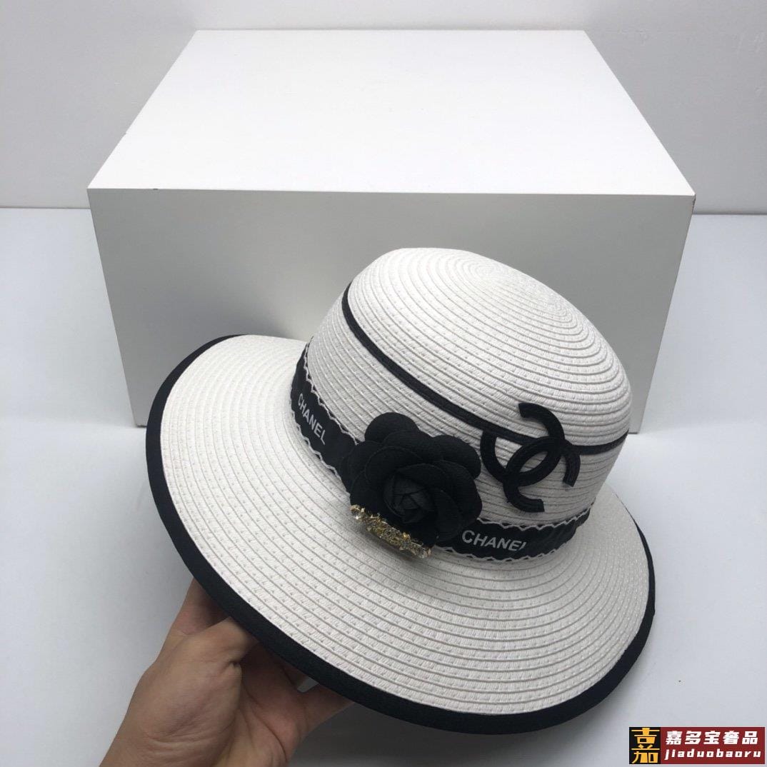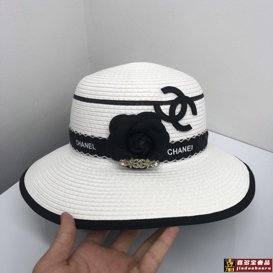 香奈儿新品小香山茶花包边草帽珍珠链条精致度假风圆顶草帽名媛风