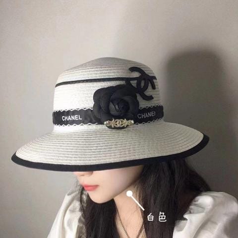 香奈儿新品小香山茶花包边草帽珍珠链条精致度假风圆顶草帽名媛风