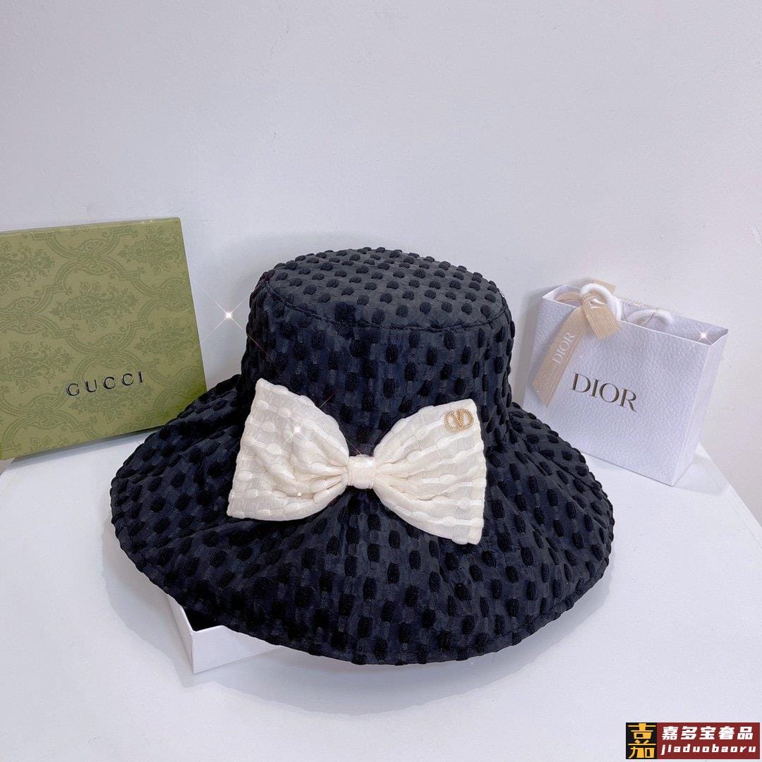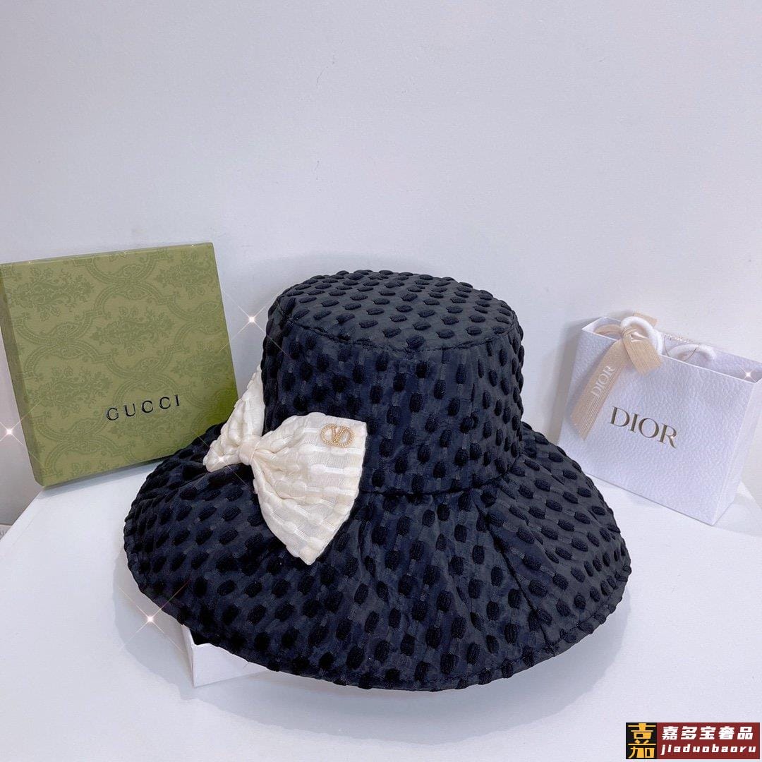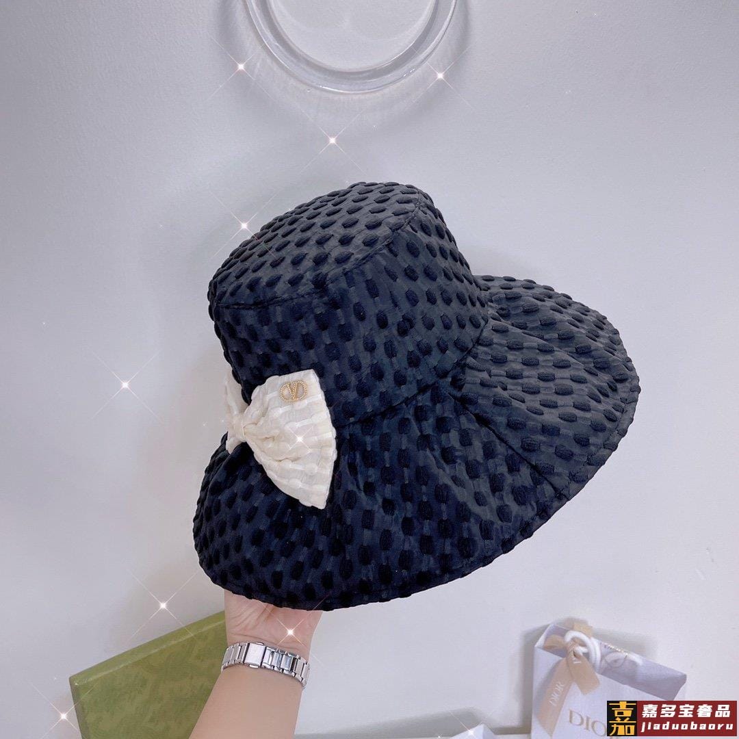 华伦天奴泡泡蝴蝶结黑胶大檐渔夫帽甜美遮阳渔夫海边旅游意味超浓冰凉防晒面料阻挡紫外线防晒小能手