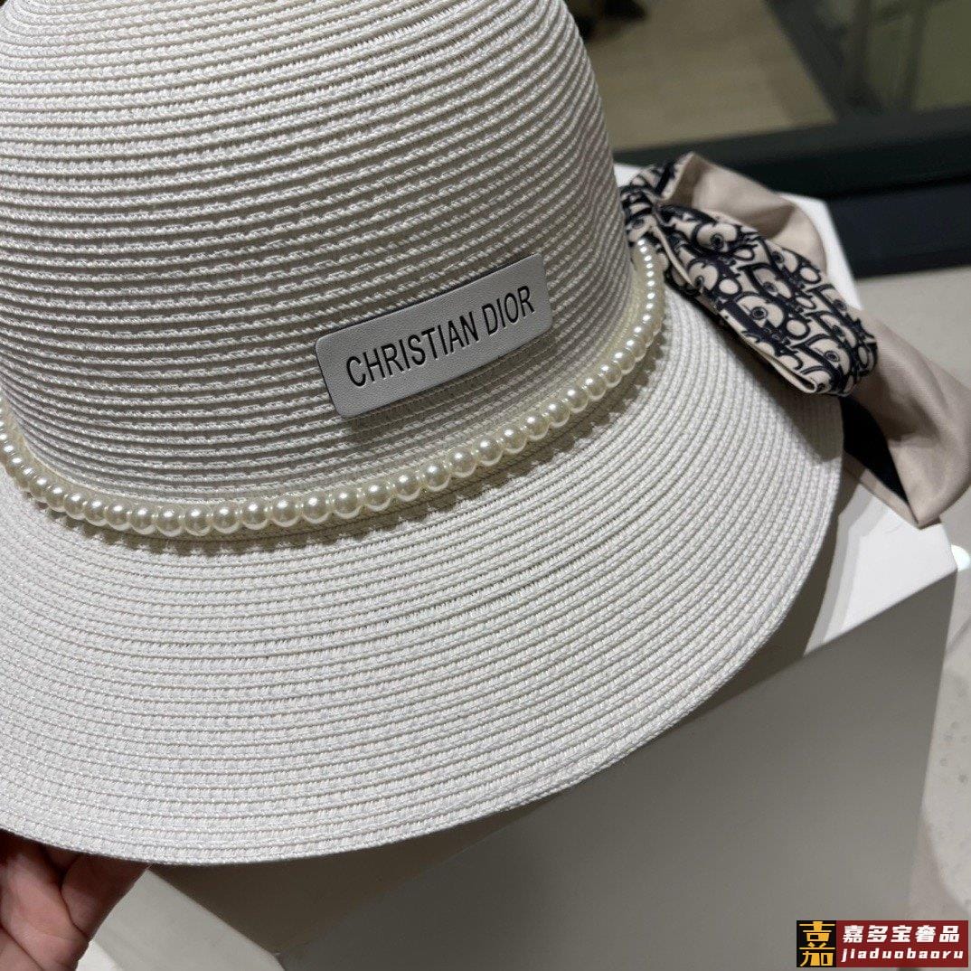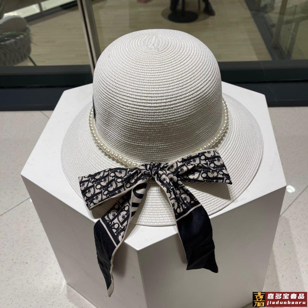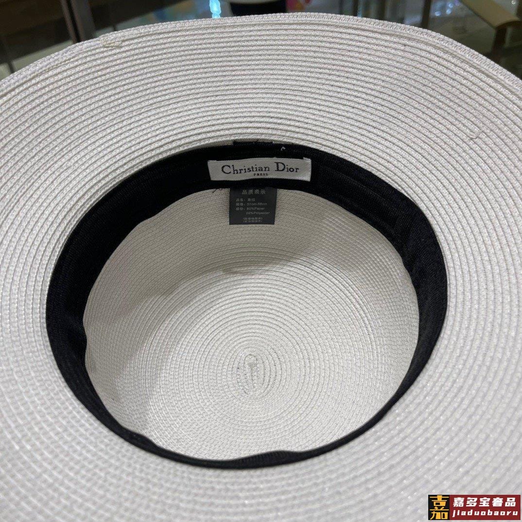 迪奥草帽夏季新款太阳帽拼色草帽高级定制蓝色杏色头围