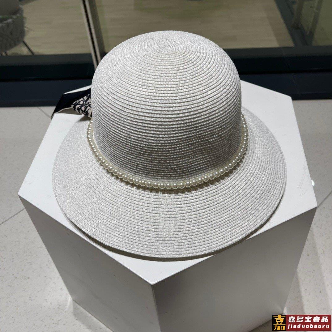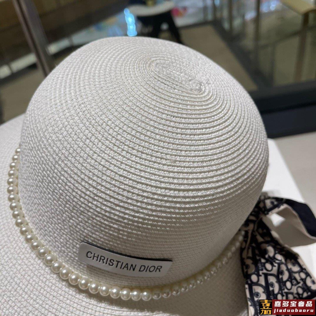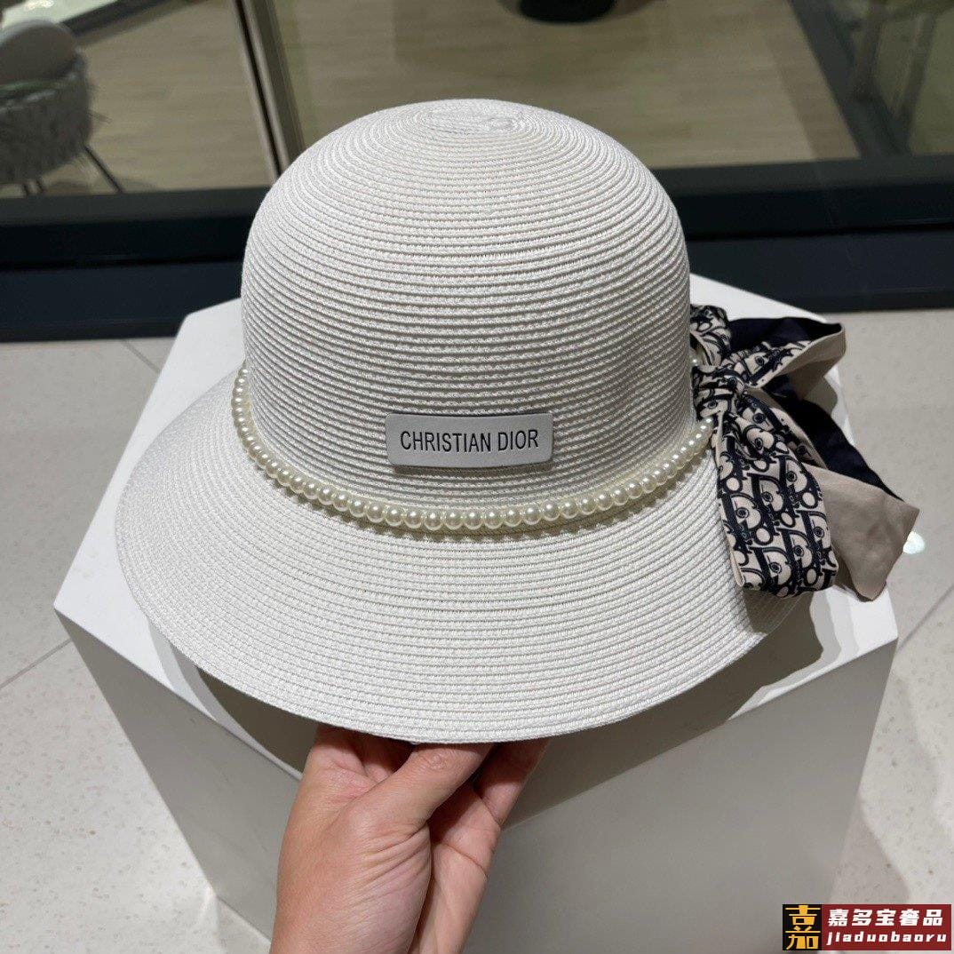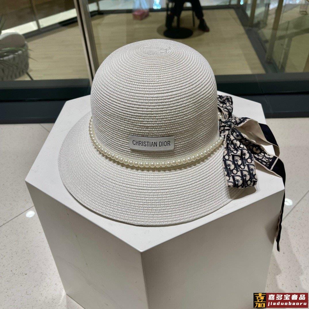 迪奥草帽夏季新款太阳帽拼色草帽高级定制蓝色杏色头围