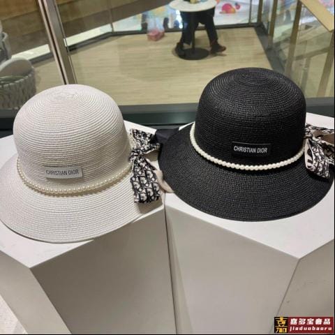 迪奥草帽夏季新款太阳帽拼色草帽高级定制蓝色杏色头围