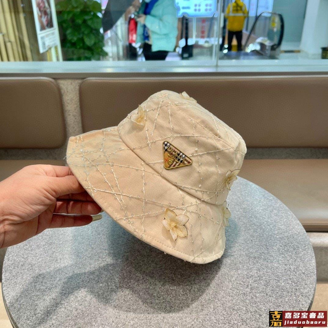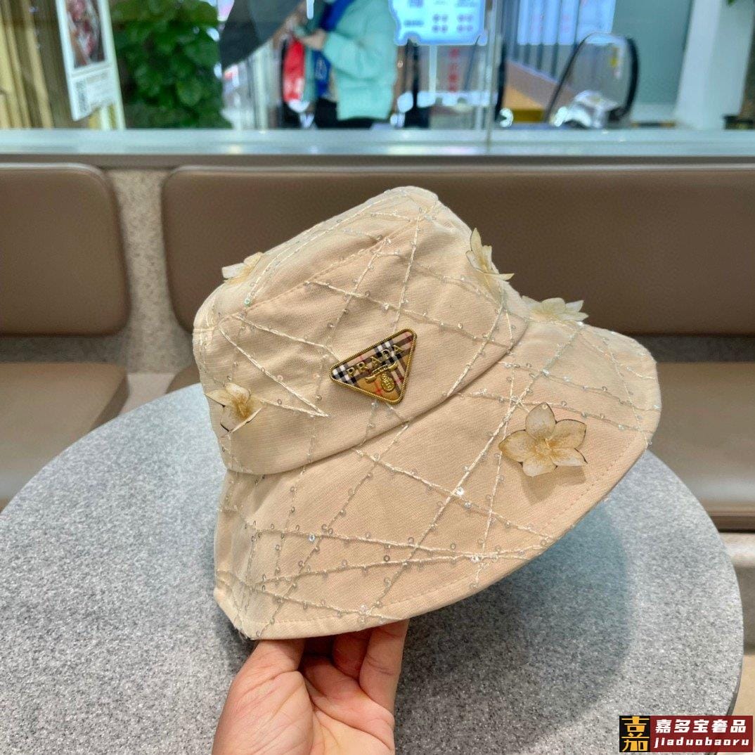 普拉达早春新款蝴蝶花渔夫帽被明星网红邂逅无数的经典渔夫帽进口