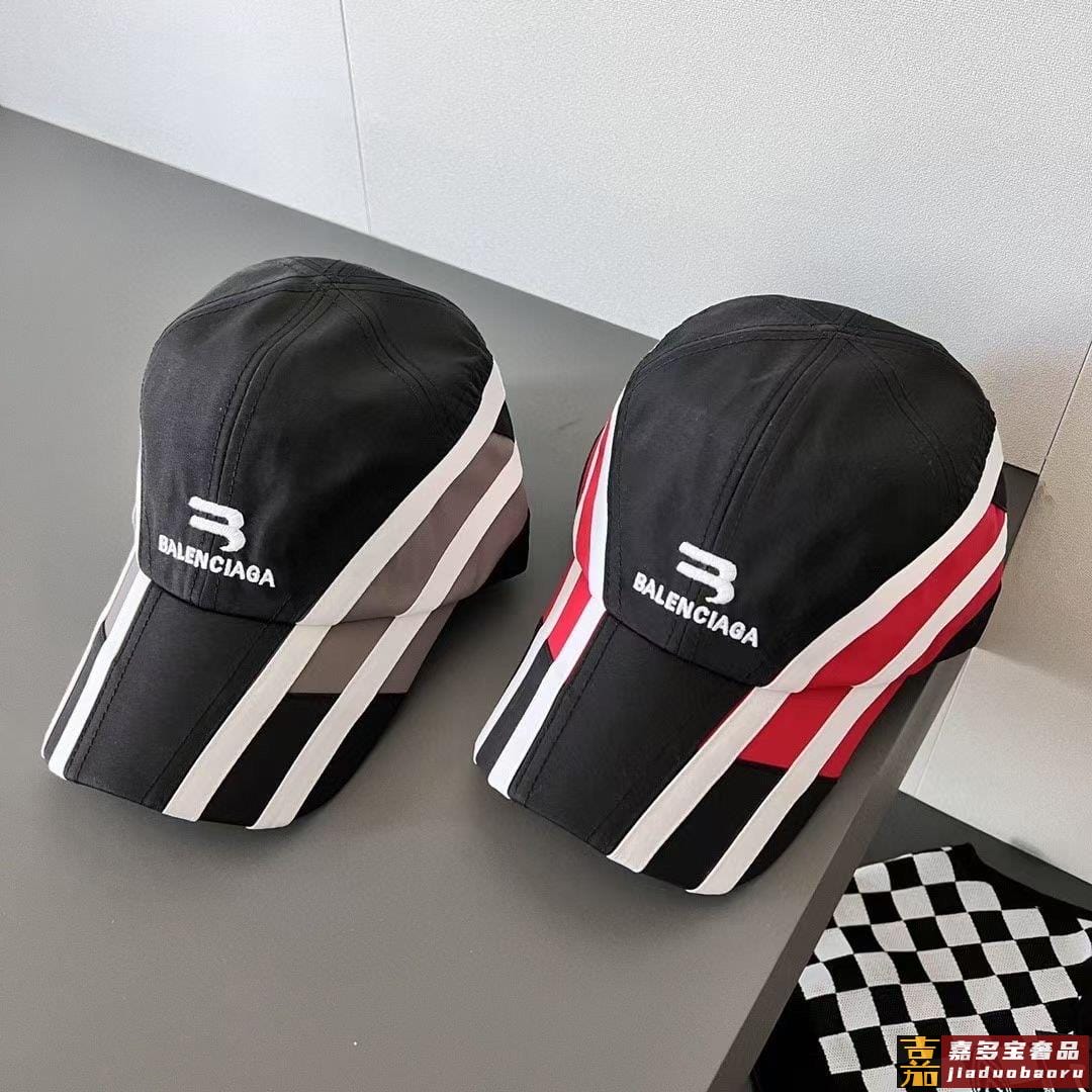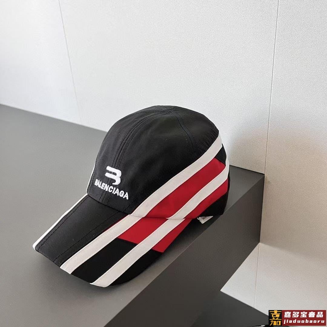 新款巴黎世家棒球帽条纹拼接棒球帽赛车棒球帽潮酷风双色