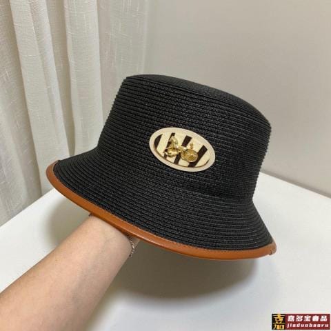 特法国赛琳爆款草编马车小桶帽皮标小刺绣时尚小桶帽清凉夏季款特