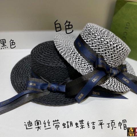 特配防尘袋迪奥新款草编遮阳草帽盆帽沙滩风简约大方百搭单品出街