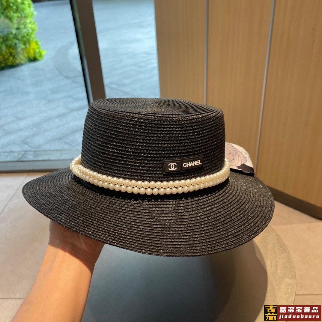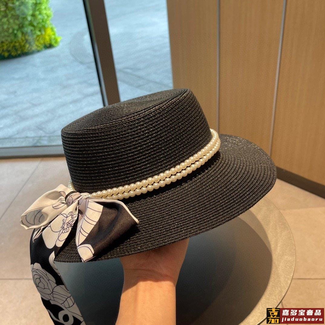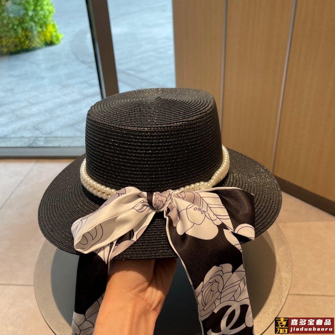 香奈儿早春新款草编珍珠丝带款草帽细节控简约大方百搭单品出街首