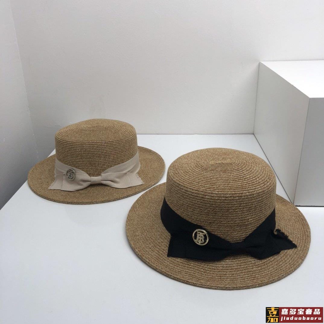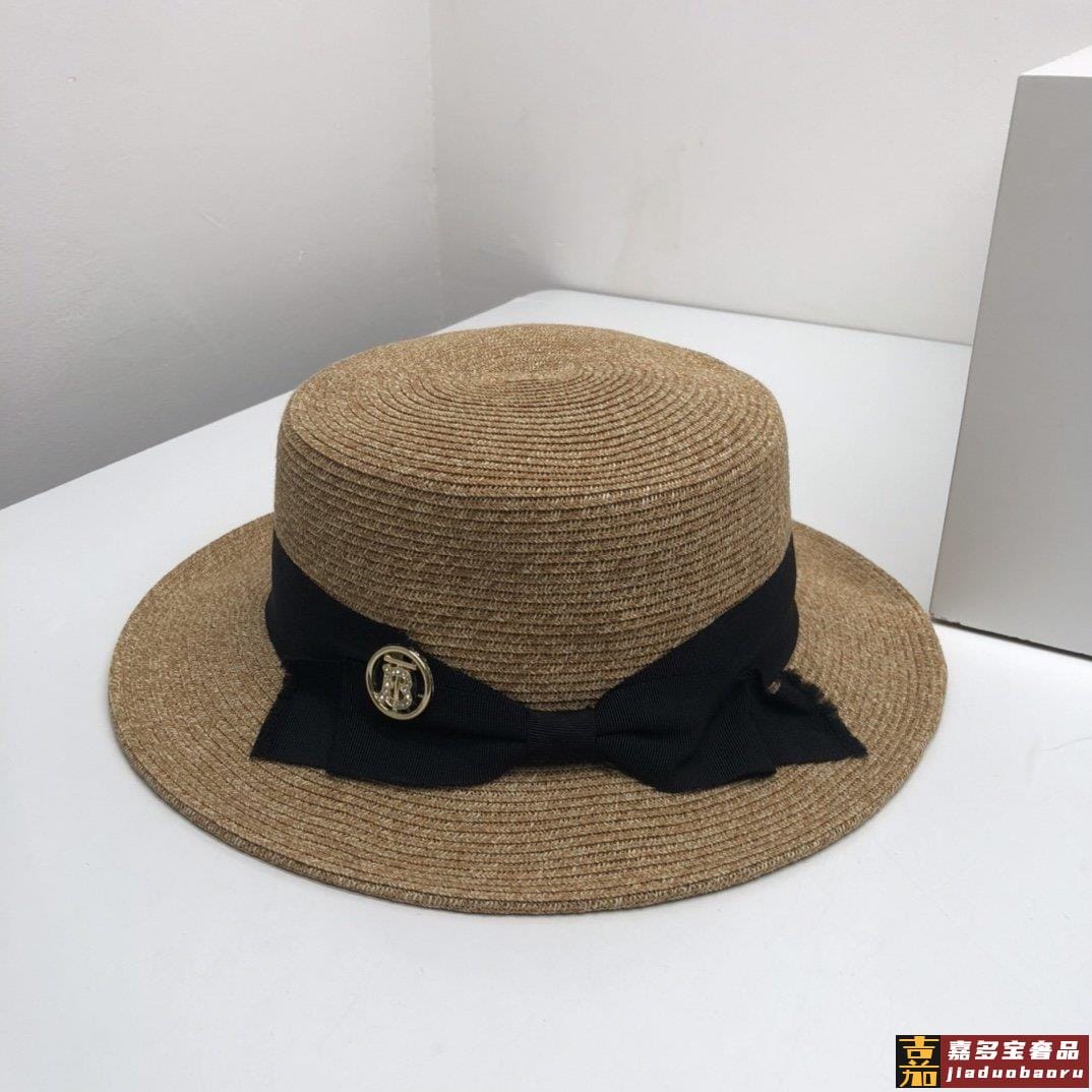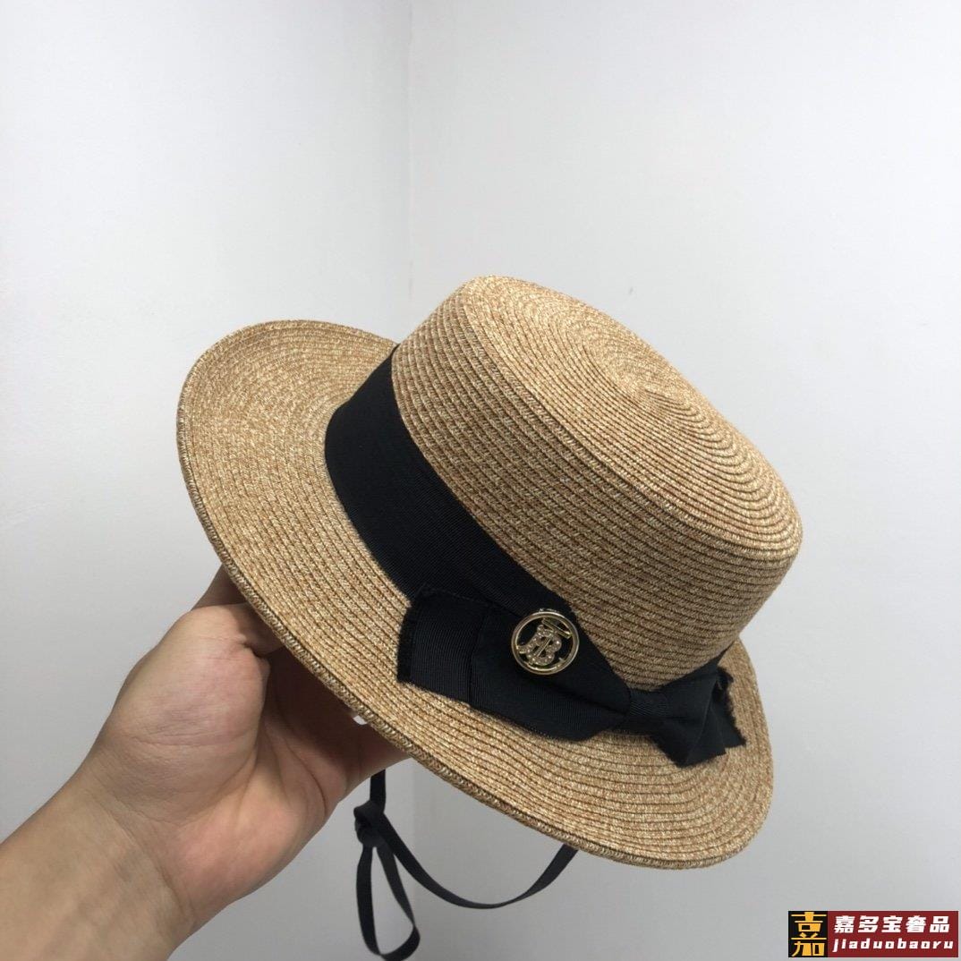 跑量款现货巴宝莉新款平顶草帽遮阳礼帽太阳帽重工缔造高端品质超