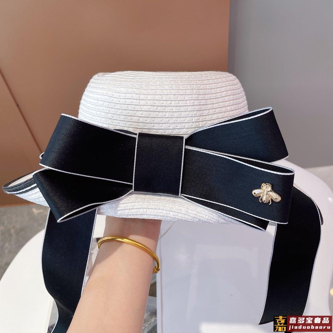 配防尘袋古奇新款卷边遮阳蝴蝶结草帽沙滩风简约大方百搭单品出街