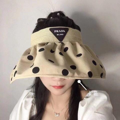 普拉达波点双色空顶帽夏日遮阳防晒必备草编蝴蝶结的设计就非常仙