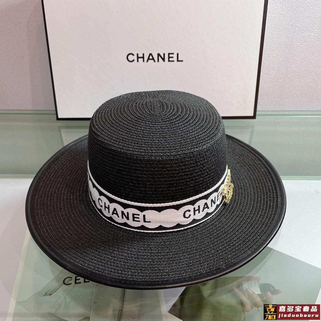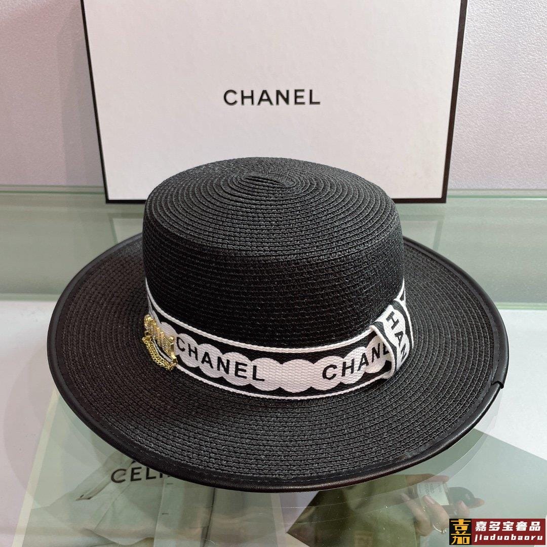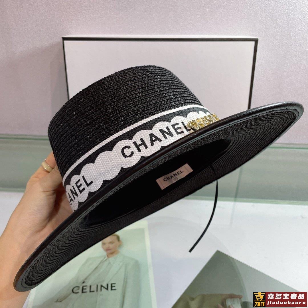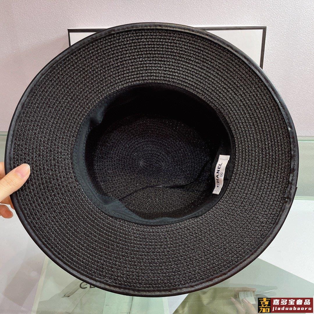 配防尘袋香奈儿新款草编平顶遮阳草帽盆帽沙滩风简约大方百搭单品