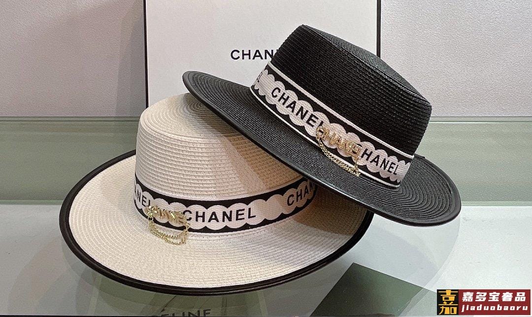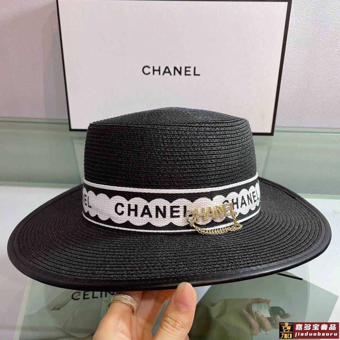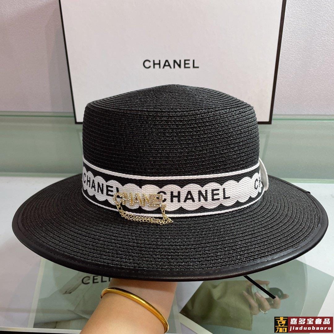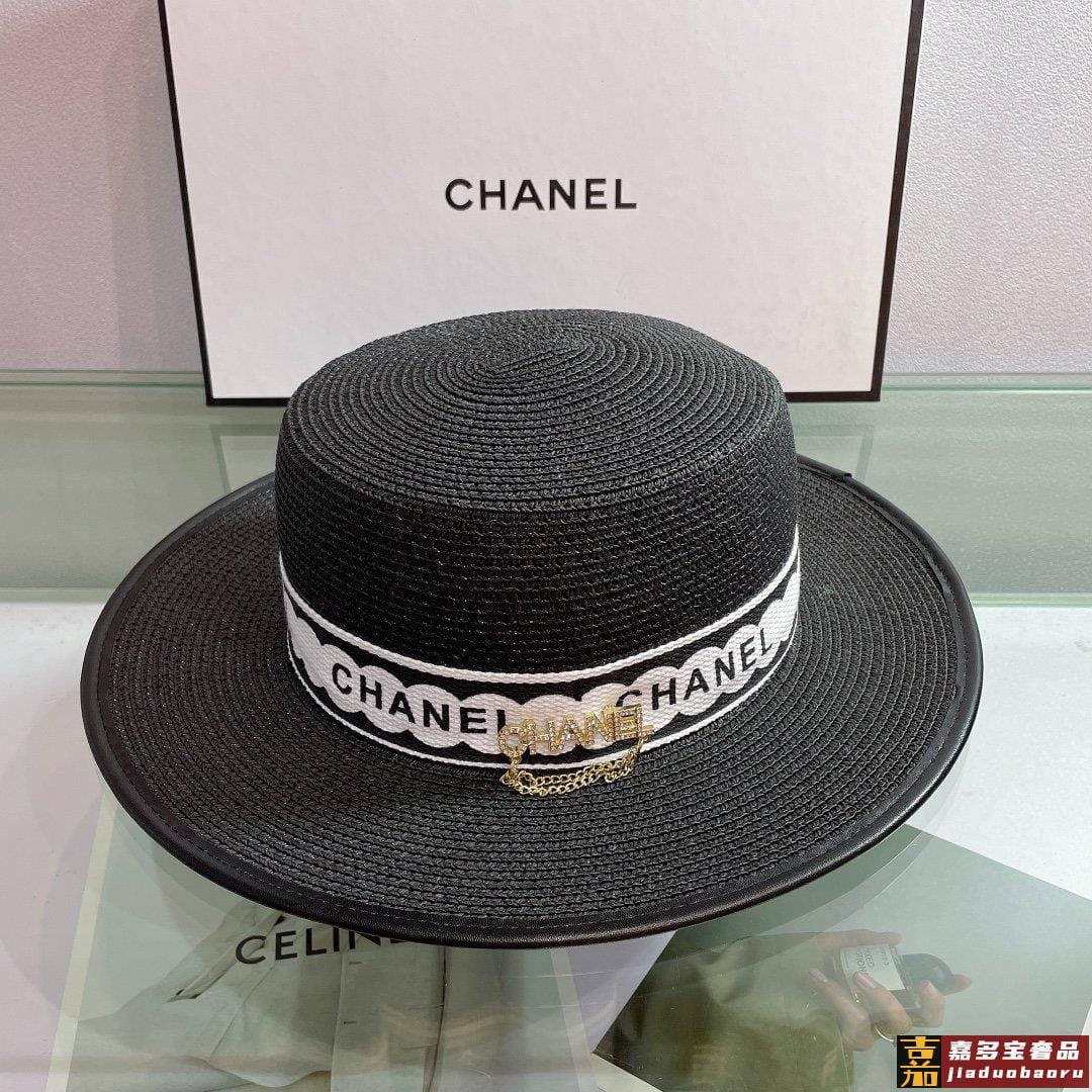 配防尘袋香奈儿新款草编平顶遮阳草帽盆帽沙滩风简约大方百搭单品