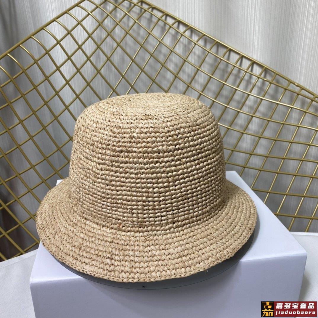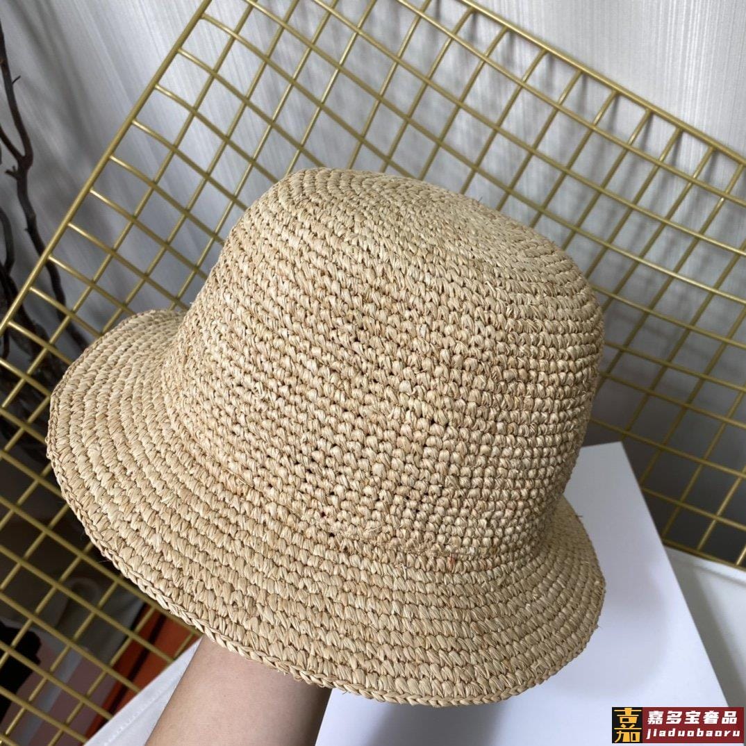 配防尘袋香奈儿新款草编平顶遮阳草帽盆帽沙滩风简约大方百搭单品
