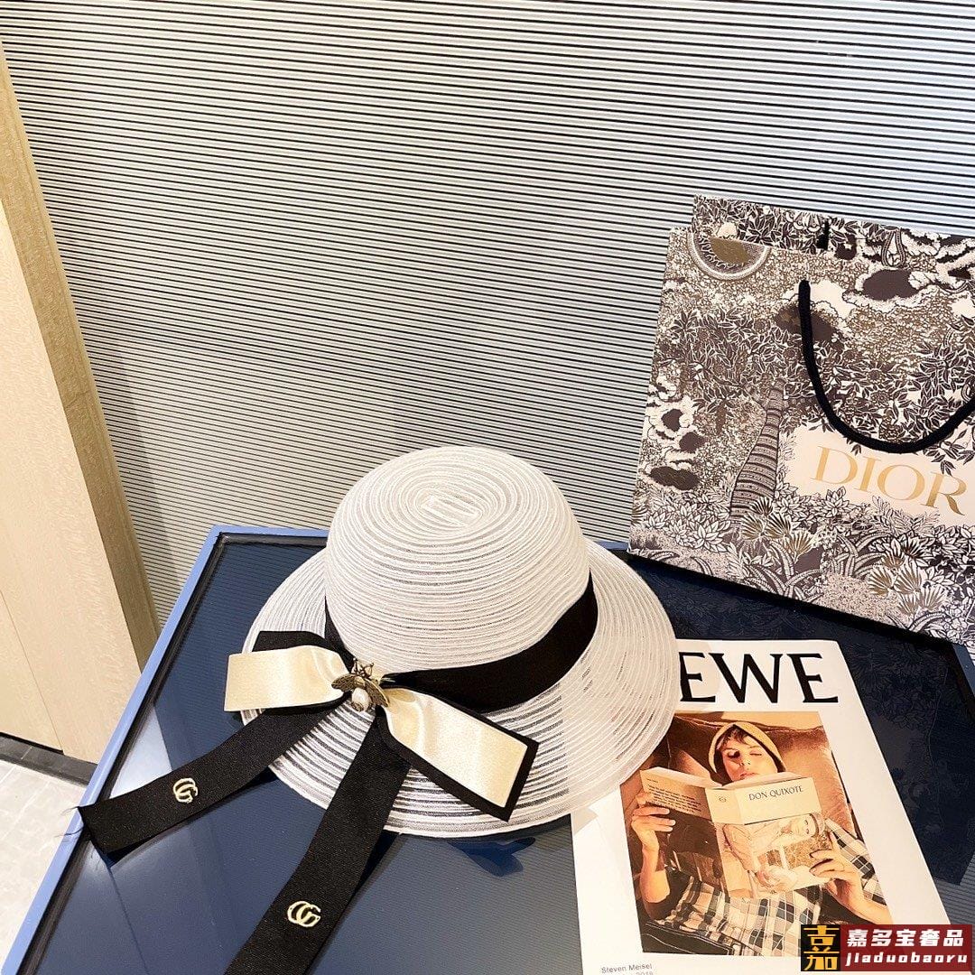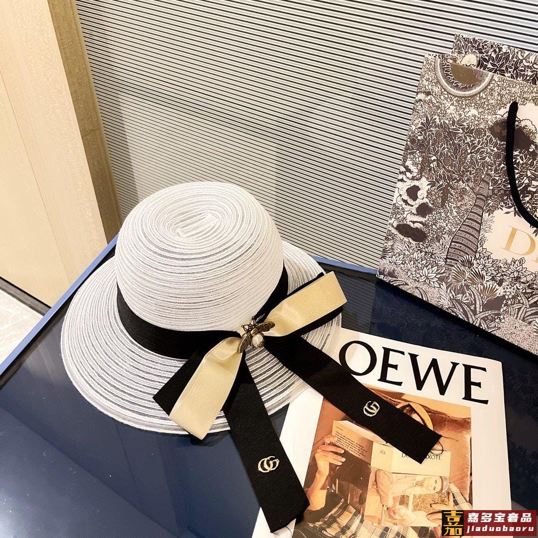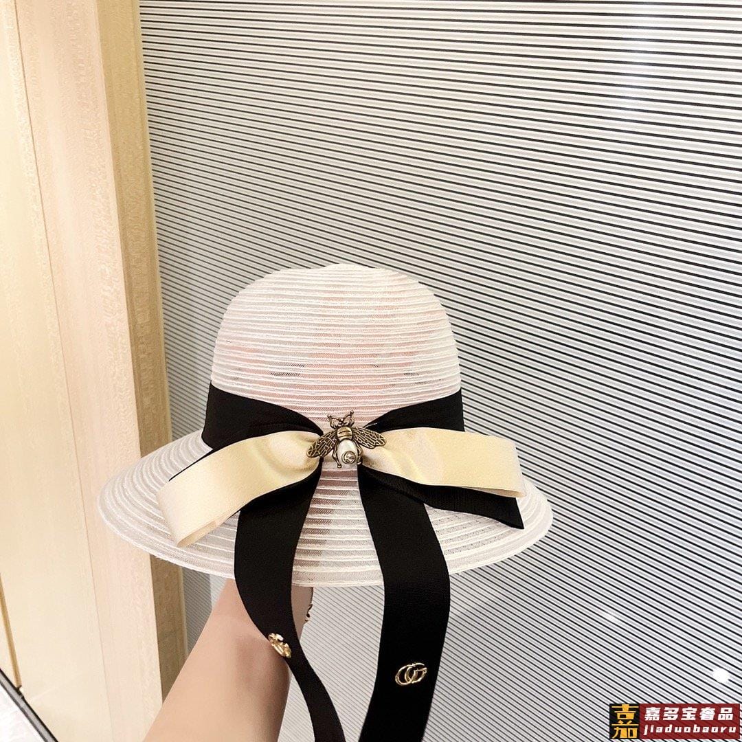 特配防尘袋古奇新款蜜蜂款遮阳草帽盆帽沙滩风简约大方百搭单品出