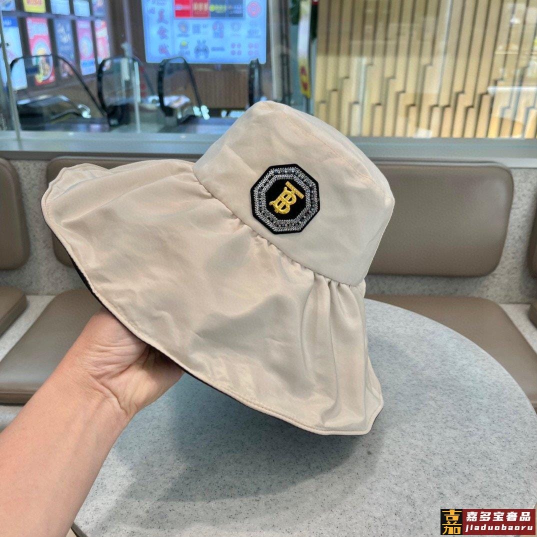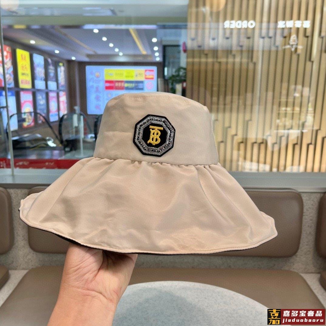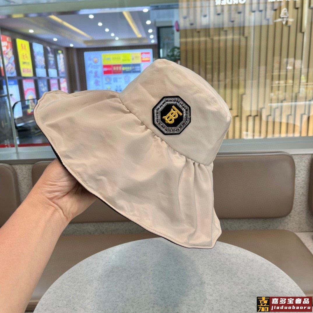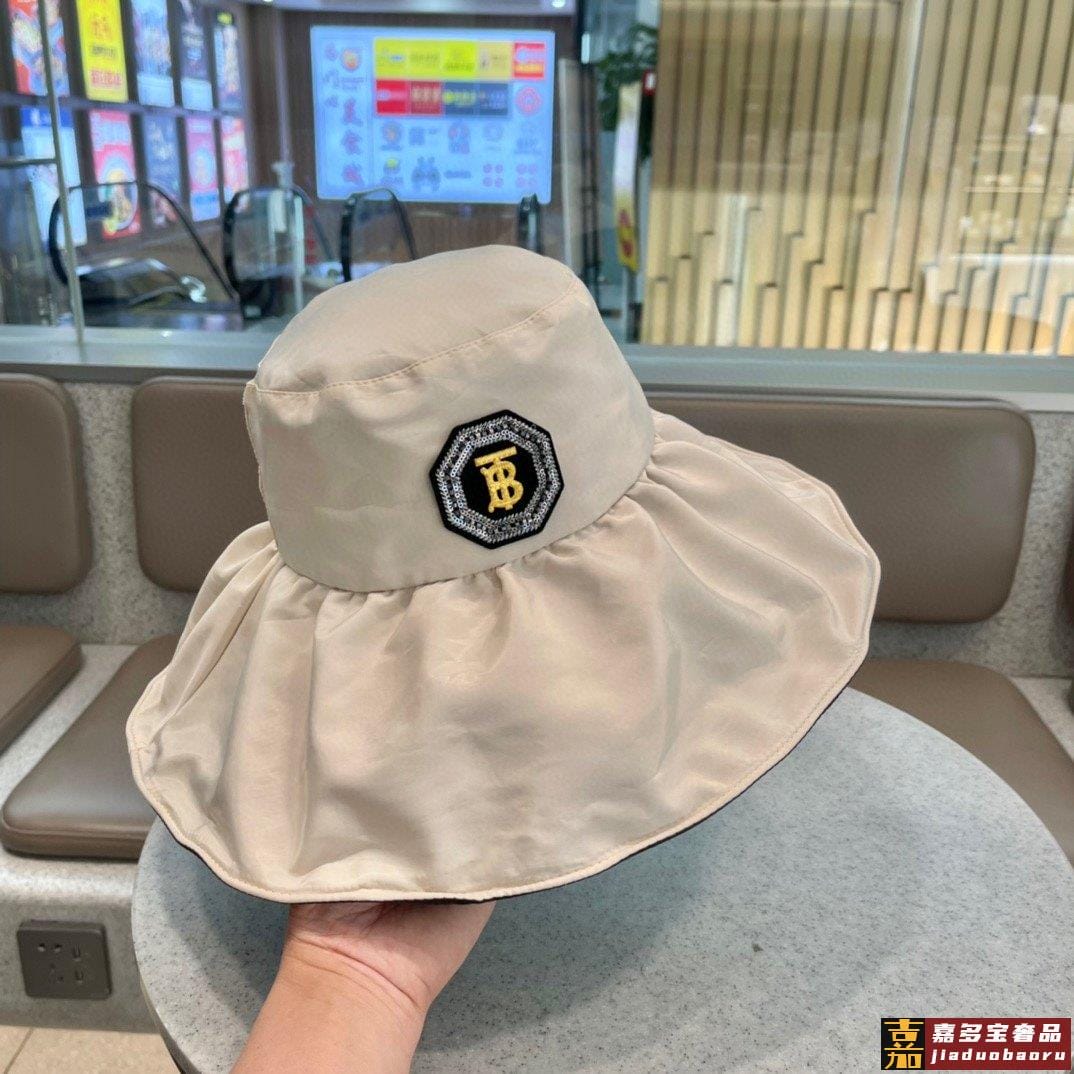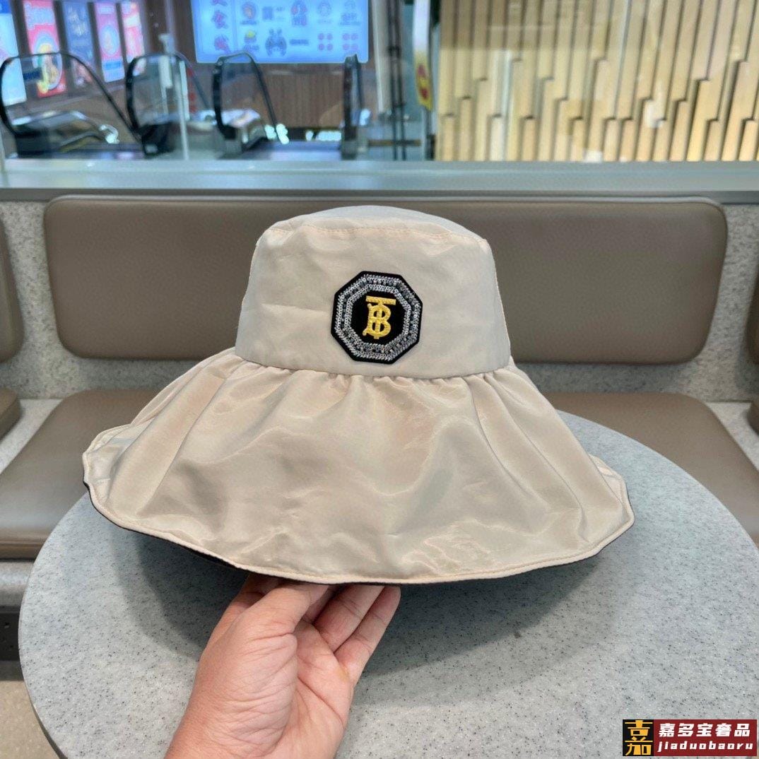 巴宝莉早春新款桶帽渔夫帽最强造型大帽檐带珍珠街拍风桶帽巨遮脸