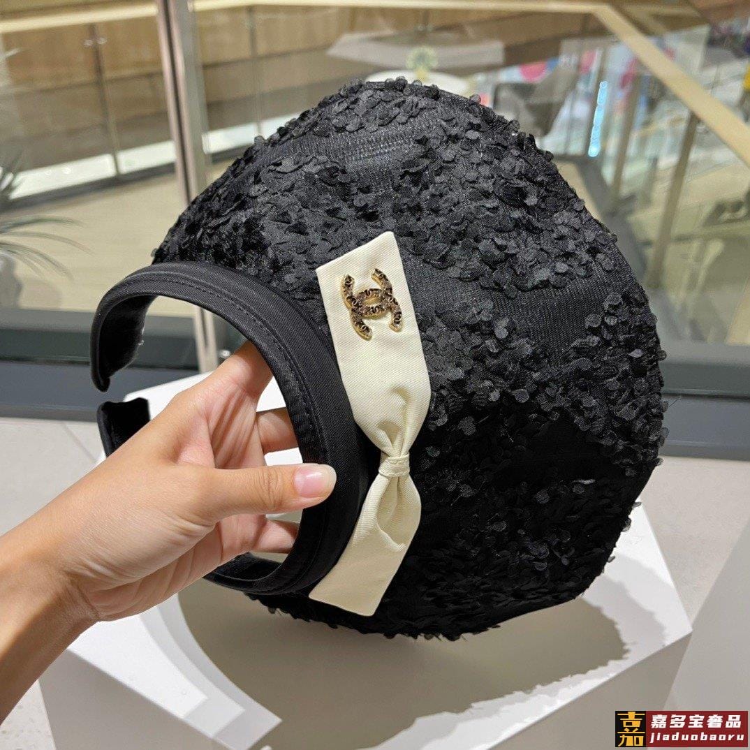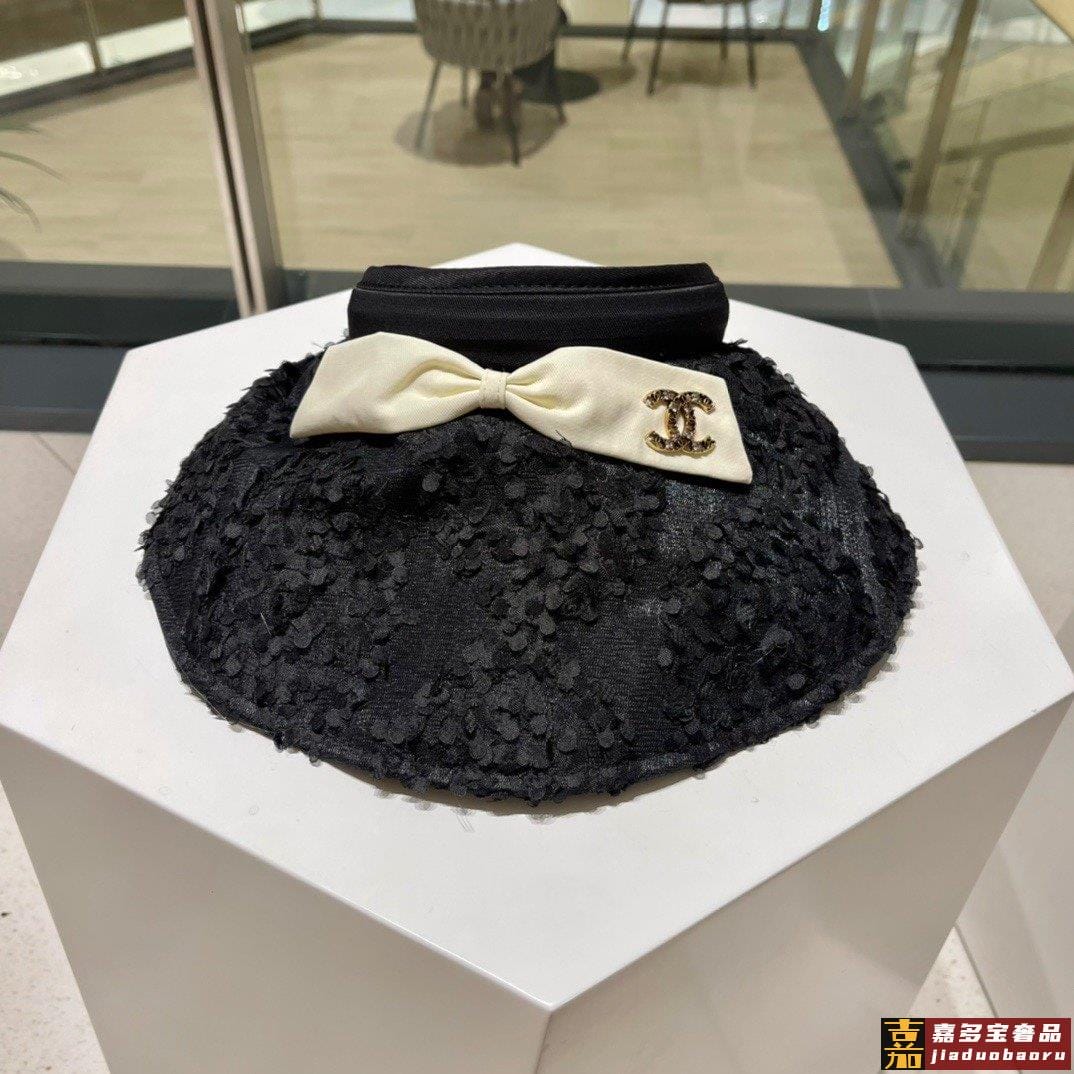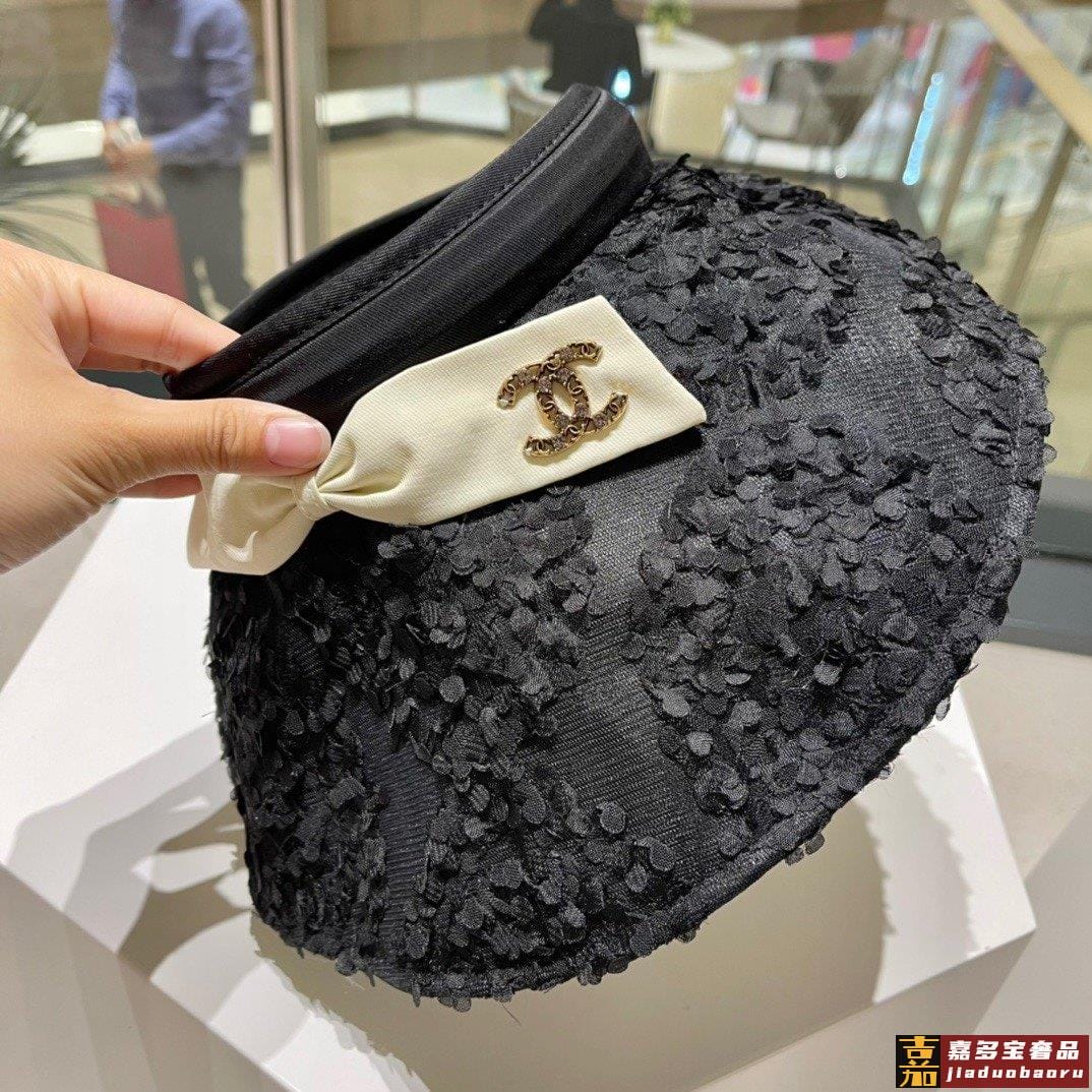 香奈儿官方新款空顶遮阳布帽空顶遮阳帽黑白两色