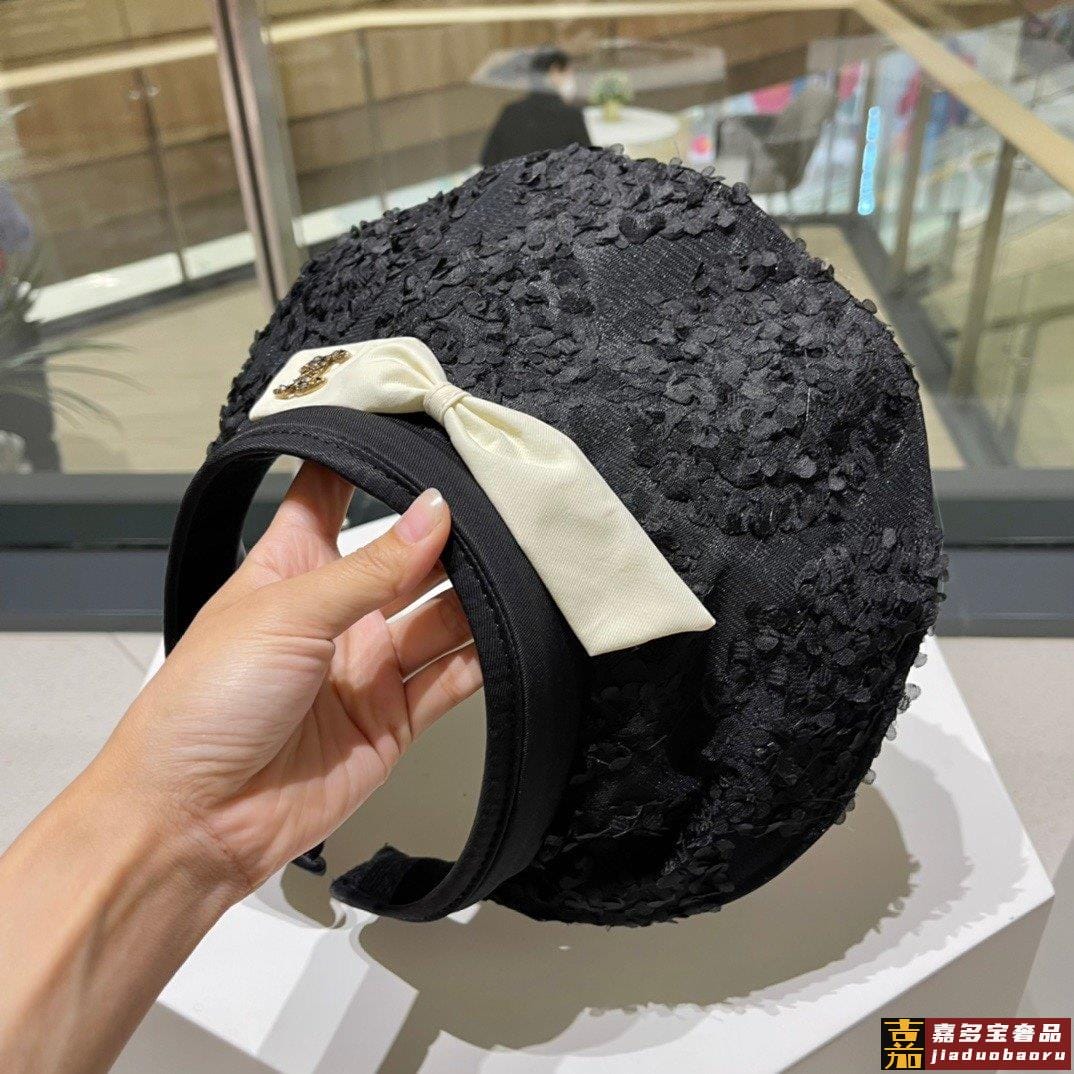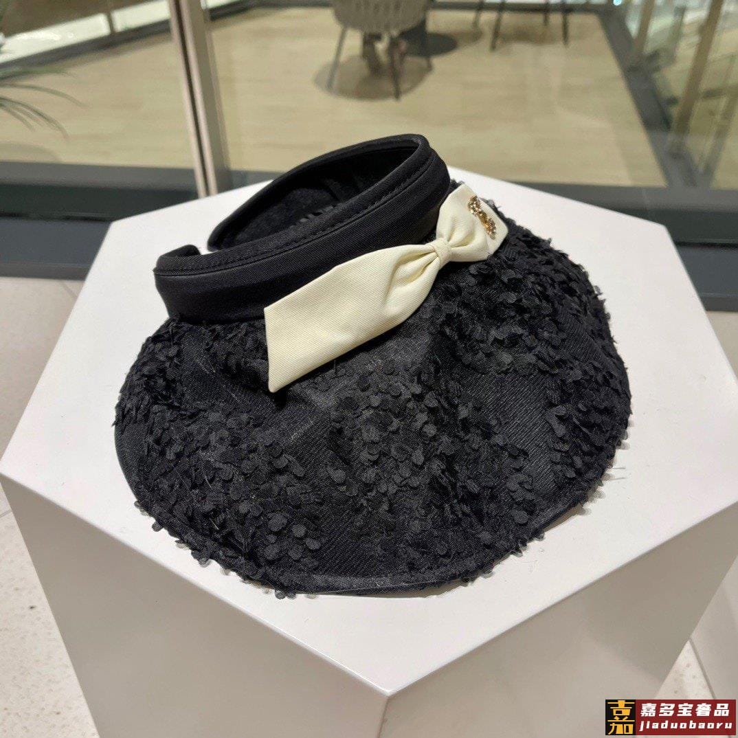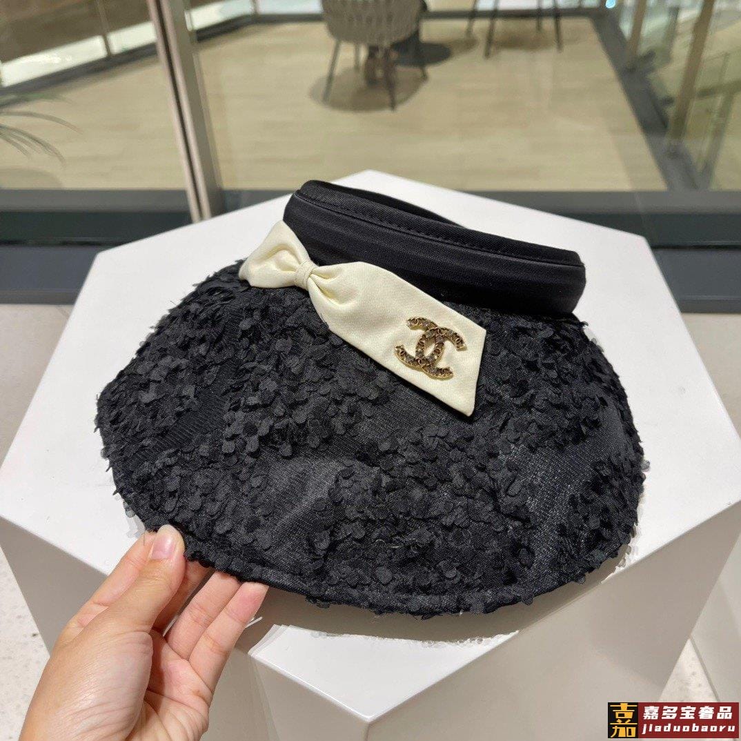 香奈儿官方新款空顶遮阳布帽空顶遮阳帽黑白两色
