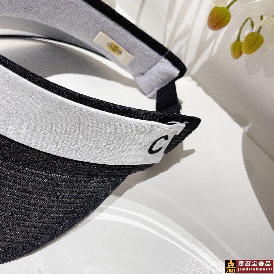 香奈儿官方新款空顶遮阳布帽空顶遮阳帽黑白两色