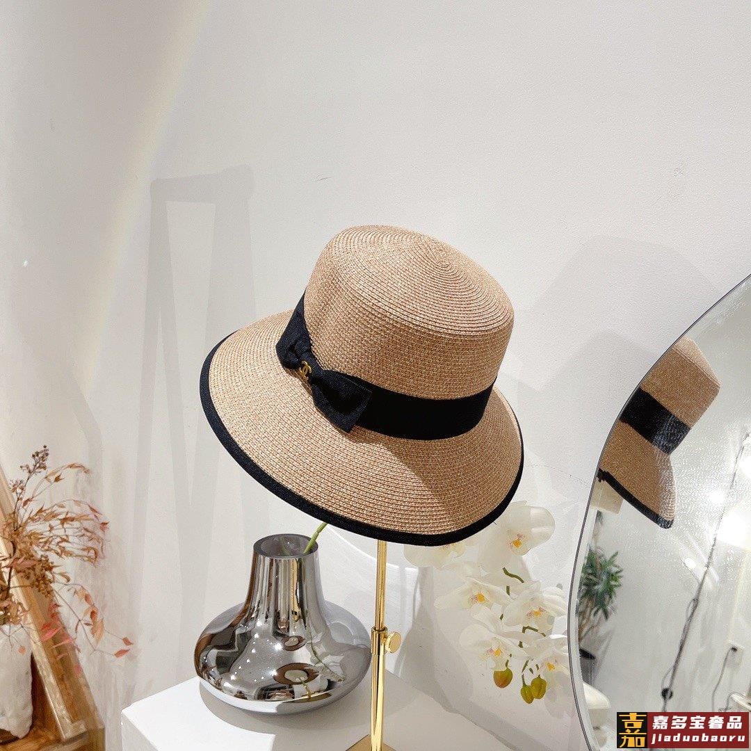 特配防尘袋迪奥新款大牌边草编遮阳草帽盆帽沙滩风简约大方百搭单