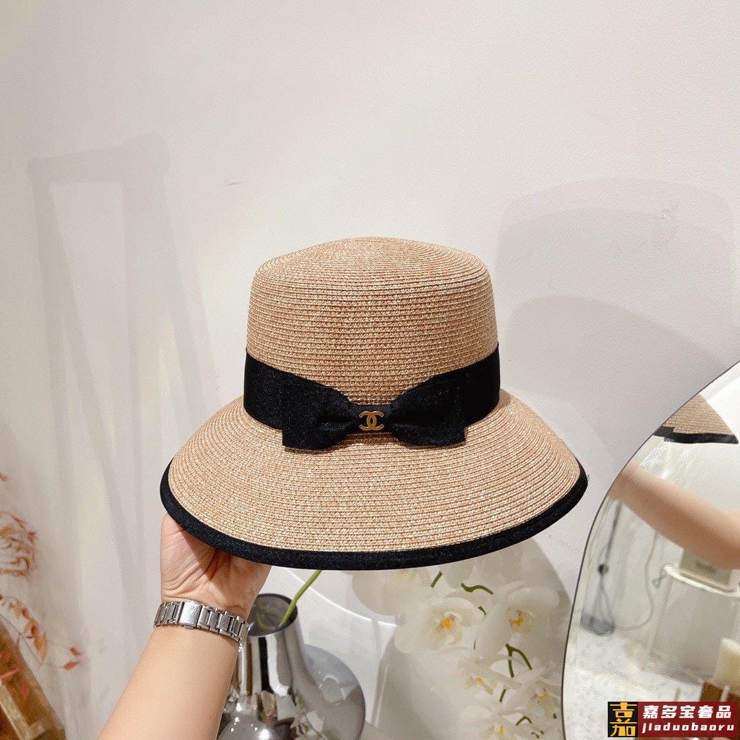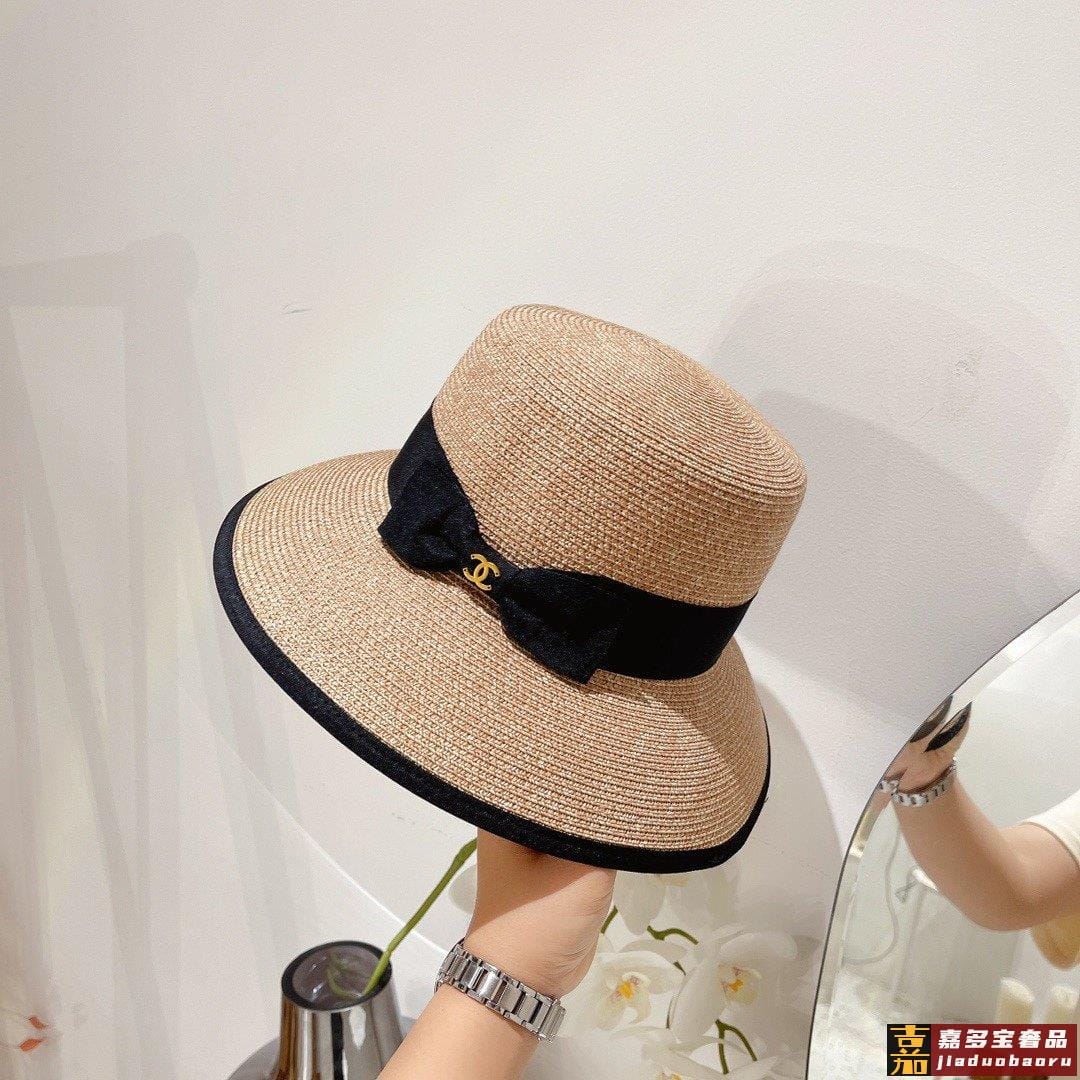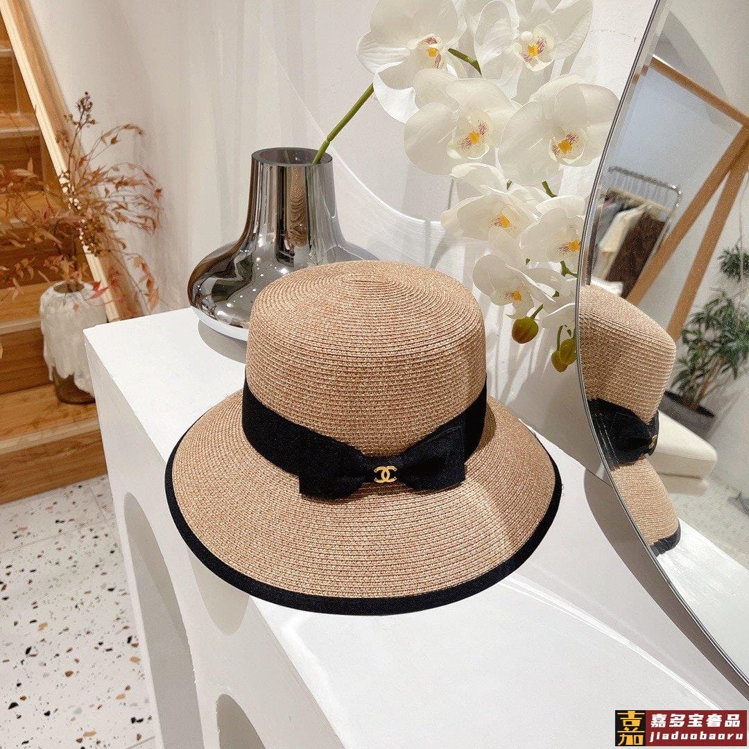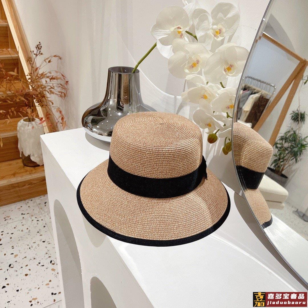 特配防尘袋香奈儿新款密织草编遮阳草帽盆帽沙滩风简约大方百搭单