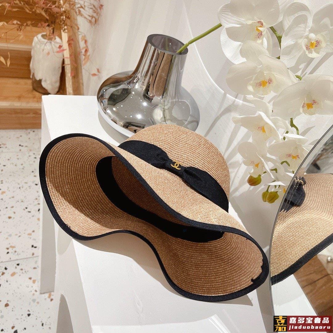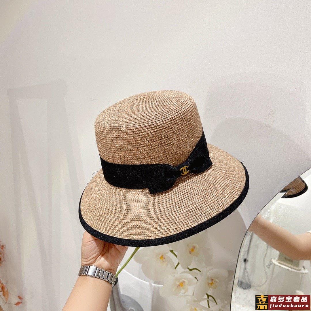 香奈儿官方新款空顶遮阳布帽空顶遮阳帽黑白两色