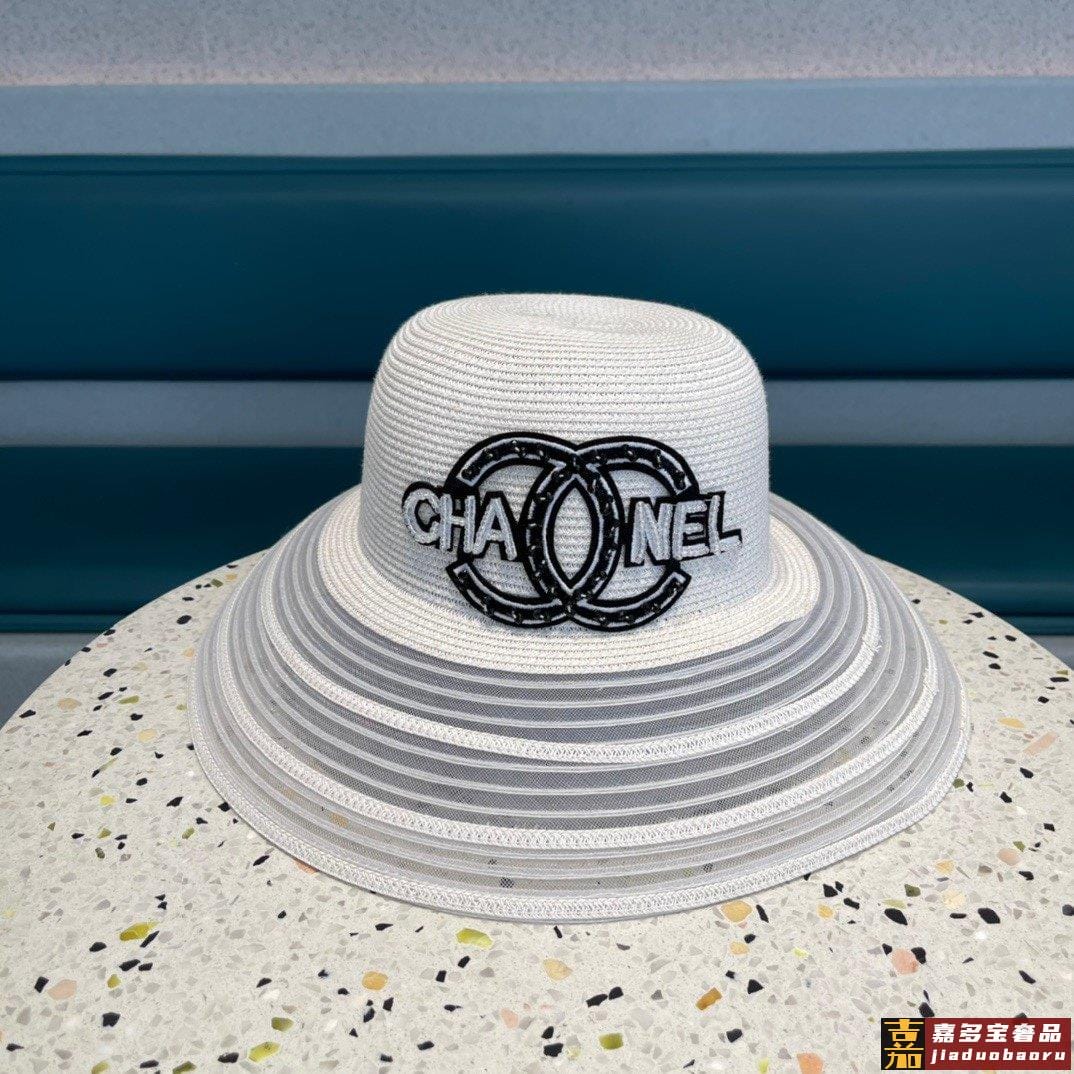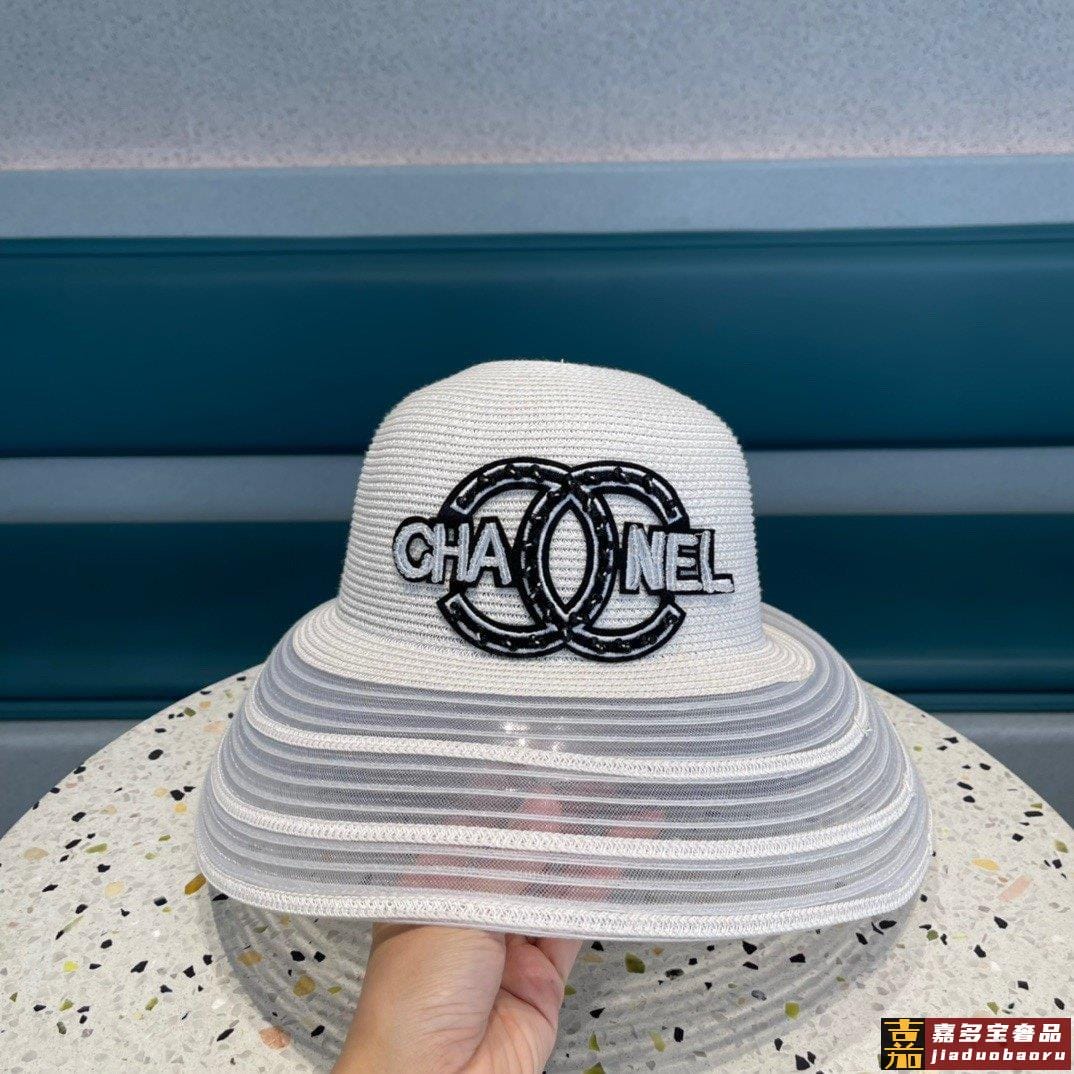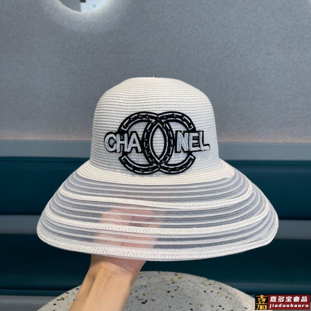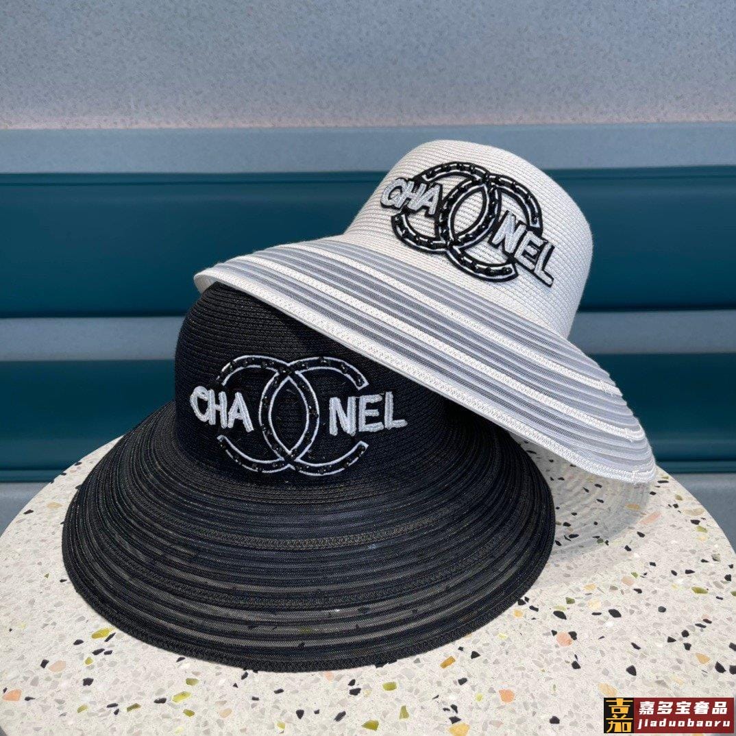 香奈儿官方新款空顶遮阳布帽空顶遮阳帽黑白两色