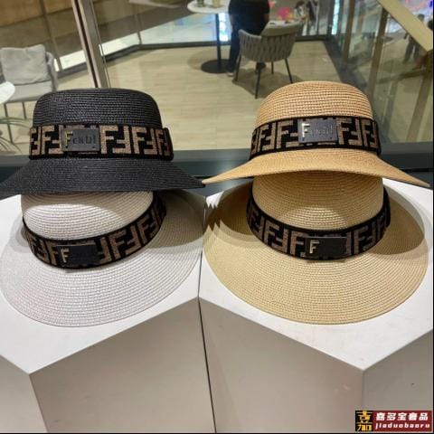 芬迪新款草帽拉菲草制作拼老花面料名媛必备头围
